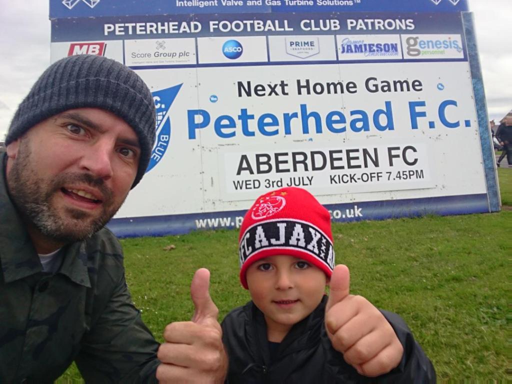 No pre-season goes by where I don’t head to an Aberdeen match v a lower league opponent. We seem to play a “local” one every year, Arbroath, Brechin City, Huntly and the like. This year Peterhead at Balmoor beckoned for us. No pre-match entertainment before this one as it was a night time game. I had always wanted to take junior to Balmoor. Not sure the reason why but it may have something to do with the locality (35 – 40 minutes in the car), the fact my old boy has a wee soft spot for them as he worked his only job for forty years in the town or it might even be down to the fact Balmoor was my home ground when I played for the districts during my school years. I do not really know but this was the chance to do it and he was up for it and spoke about it in the days leading up to it.