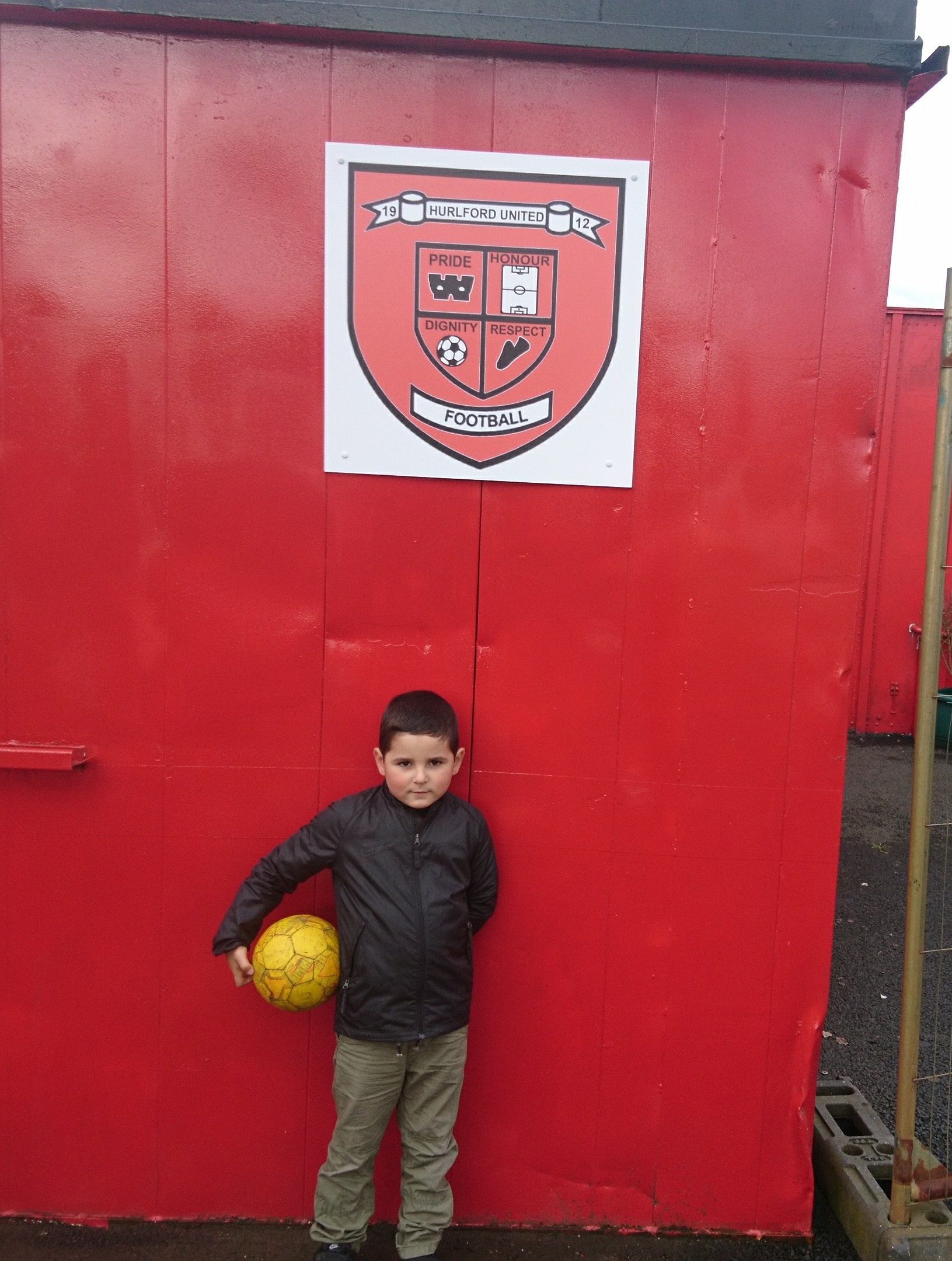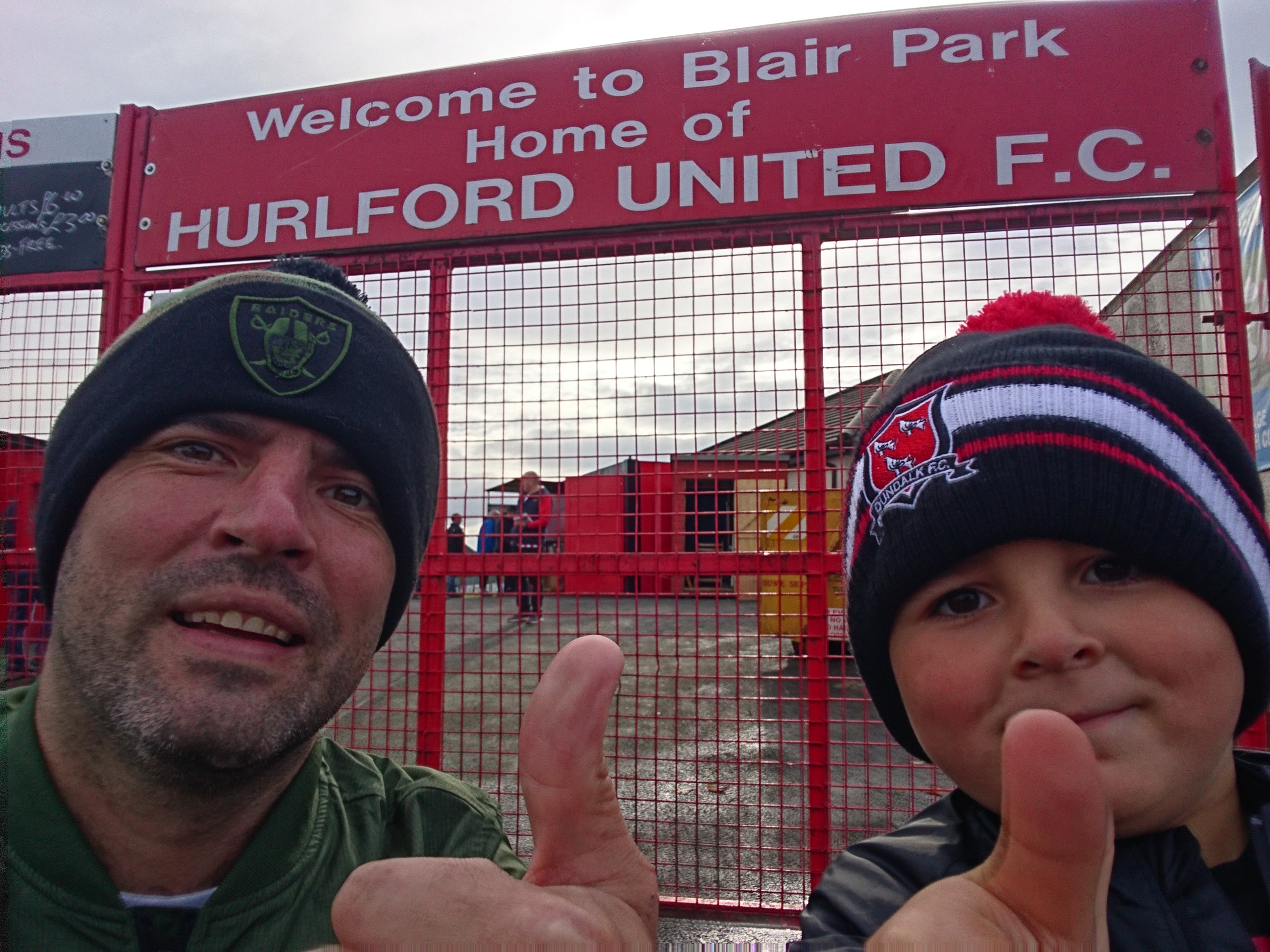 Blair Park has a pungent stink of pish when you walk in the gate,with water which may not be water streamimg from the toilet block. Lovely welcoming site that. Another thing thats clearly evident when you walk in, is the angle of the pitch. Not in a Beith style of end to end. Its across the from the enclosure wing side to the opposite church side wing. I love quirks like this in the lower ends of Scottish fitba. Due to Wee Man being in tow a couple of locals got speaking. Both in similar fashion,starting with “top of the league eh?” thinking we were part of the impressive Pollok numbers (easily two hundred there). But these guys turned out to be clones. I got blethering about Hurlford with them and they both wanted a managerial change as it was “a bit stale”. They were both also ex season ticket holders at Ibrox, but despite this they were fine enough dudes and both told us the random fact above. Very similar in all ways these two. They were also both chuffed to see Wee Man and his yellow ball(possibly the youngest kid there) coming to watch their team.