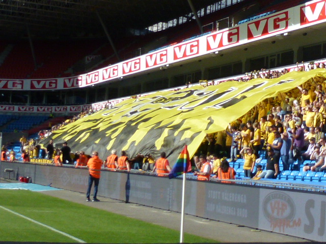Vålerenga have had a reasonably nomadic existence since the sixties. They played at the Bislett Stadion(Skieds current ground) for two separate periods of time, then the Ulleval which extended longer as the clubs issues put the new stadium on hold (the Intillity Area opened last season). So I was to watch them in the national stadium, not far from the ski jump which dominated the skyline on the taxi ride up.