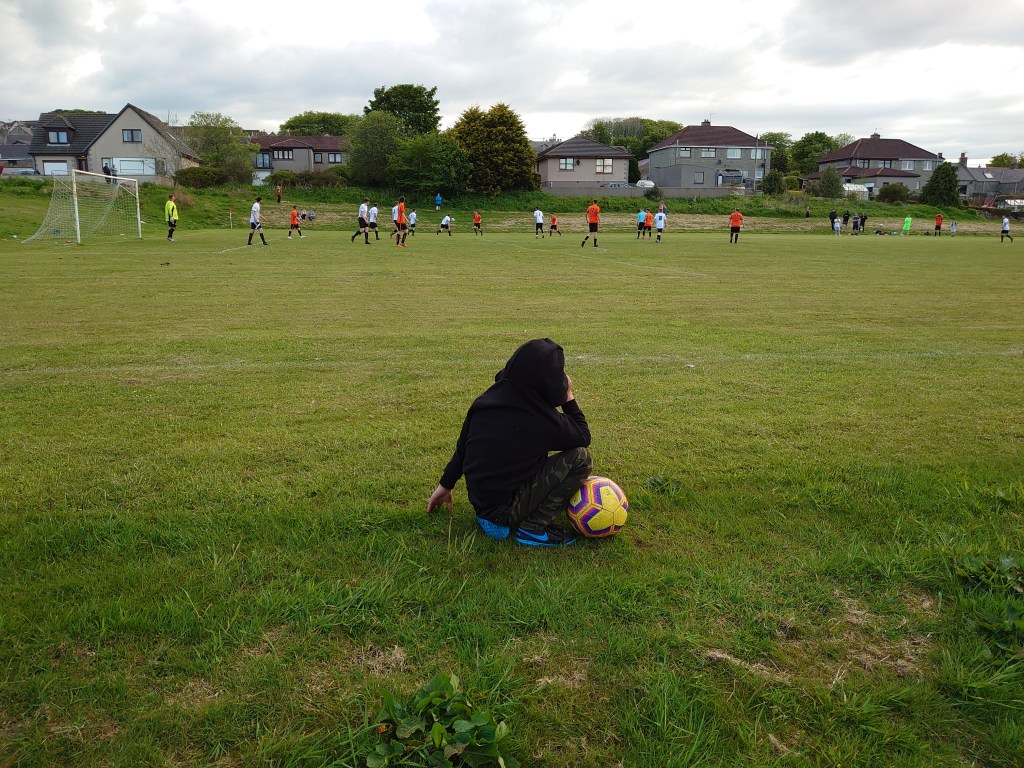 Amateur and Welfare fitba has stereo types and I am not going to lie, this match had a few of these, the “big” keeper (New Deer), the older, wearing , larger lad who doesn’t cover much grass who in fact turns out to be a very clever and astute player with a magic range of passing (New Pitsligo’s Ferguson, very good player). The sweary manager, (New Deer), poor defending (bit of both) but it all made for great viewing. The first half started as the game was to go on with the hosts creating opportunities and in truth being the better team. Some of the through balls from midfield were brilliant bound to pay off eventually and maybe later in the season will more often once match sharpness comes in. However the opening goal came from a corner, with the New Deer keeper coming to collect he clattered into two of his own defenders leaving the ball to drop at the edge of the box where Ferguson was there to howitzer the ball past everyone, almost removing the net pegs in the process. It quickly became two when a through ball caught New Deer cold and Donaldson found himself clean through to stick a well placed shot past the big visiting keeper. Good finish but a disappointingly simple goal to give away from a New Deer perspective. The home side continued to create and the big 17 , Dillon couldn’t believe his luck when poor defending gifted him an easy finish from close range. The game was in danger of turning very one sided, But New Deer threw a spanner in the works when again there was more suspect defending on show when somehow two defenders didn’t mange to carry out their bread and butter, leaving the number 11 to boom one home from point blank range. The finish was a good old fashioned laces through the ball type leaving the keeper absolutely no chance. This leading to an amusing episode when home number 1 (who was actually 13) picked the ball out of the net and punched it at one of the error making team mates and followed up with an explosive foul mouthed tirade . He need not have worried as almost immediately the three goal lead was restored when Osler was on hand to take advantage of more poor goalkeeping when the cross was fumbled by the keeper leaving a tap in header for the 22. But New Deer cut the deficit again almost instantaneously and you guessed it, via some poor defending when the 11 was given free reign down the left , the defence backed off and backed off leaving the chance for a speculative 25 yard effort across goal, which was duly taken with superb accuracy .