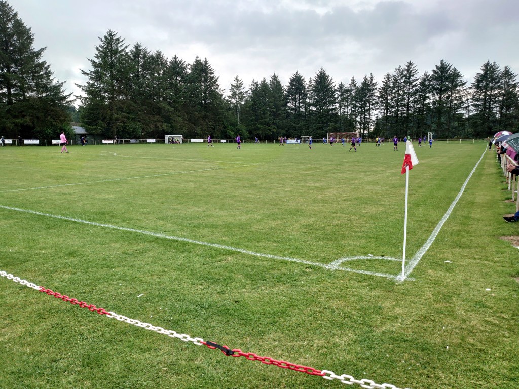 Today was Wee Man’s turn for a milestone. One he was personally chasing. He was determined to hit 66 grounds at 6 years old. Mission accomplished for him fourteen miles from the house door and with a month and ten days to spare. However, Pleasure Park was not originally on the cards. Logie Park in Forres was to be destination but over the last day or so I noticed a slow puncture on the motor. A twenty eight mile round trip was a better and safer option than a one hundred and thirty. Pleasure Park is a ground I have played and spectated at in the past and once upon a time saw me receive a booking while a substitute. This when a Maud man made a ludicrous tackle on the wing and ended up as good as in our dug out so I stood up and volleyed him as his attempted assault was not on. Incredibly it only merrited a booking which to this day I still have to ask the question, what did the ref actually see to only brandish a yellow card? A red if ever there was on. A revisit it was to be for me, but a chuffed loon makes it worth it and a continuation of his fitba education which he clearly loves.(Plus I got the obligatory thumbs up photo which was not in the collection thus far as my last visit came long before I started).