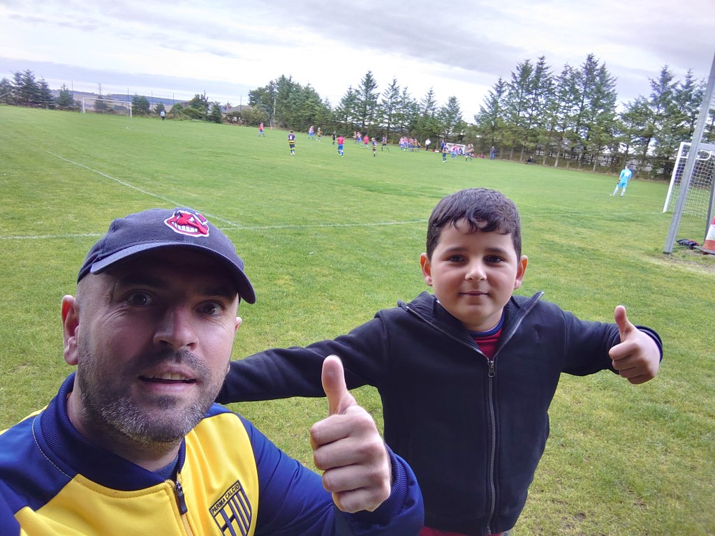 The last game of Wee Man and I’s season 20/21 (We work Scottish Cup Final to Scottish Cup Final so a NESFA season falls in two of our seasons) was the best game in the corona truncated season. It was between Cuminestown and Macduff who shared ten goals. It was bloody brilliant viewing with Macduff coming back from 5 v 2 down. This made me think we could be in for goals and again we would be treated to four or more goals. So far this season we have seen eight out of ten games (RIP Sean Lock) with at least four goals scored. I was positive this would be the case again tonight with there being three goals scored in the first eight minutes. The visitors started things off with a well worked move down the left which was laid on a silver platter for the number 7 who powerfully struck home with the inside of his right foot. Ardallie came close to equalizing almost immediately when their centre half “Ally” looked destined to score from three yards out but for some great pack like defending from Macduff squeezed him wide and away from goal to concede the corner. Top last ditch defending. Unfortunately for the defenders the resulting corner was cleared for another kick, this time it was a stunning ball which was even more stunningly dispatched by the home number 8 “Tiago” (very exotic name for deep in Aberdeenshire). The placement he got on the header was class and we had a cracking view, across the goal and into the side of the net leaving the keeper well and truly planted. The scoring continued straight away when the visitors were handed a stonewall penalty. No complaints were had by Ardallie and Macduffs 11 stuck it in the keepers right with no hassle. Ardallies job got even bigger not long after when randomly numbered 29 was also given the silver service, can’t miss treatment. 11 put a ball in from the right wing that evaded everyone in its path and landed perfectly for a tap in from a couple of yards. 3 really should have been four when the so far quality Macduff 11 was picked out by a defence splitter. Bearing down on goal the goal looked to be a certainty but the BIG Ardallie shot stopper stood his ground well and managed to block the effort. I was then turn for the visiting keeper to be called into action to pull of a rare save during the night. A save that was in fact save of the match. Was the ball over the top from the Ardallie defender a hit and hope or was it deliberate? I am not sure but it picked out 11 who ended clean through but the keeper was well aware and rushed off his line closing down the angles but his work wasn’t finished. The Ardallie man rocketed his effort but the keeper was down in a flash to palm it to safety. A huge save in the match. Equally as huge as the Ardallie hitting the post not long after(11)