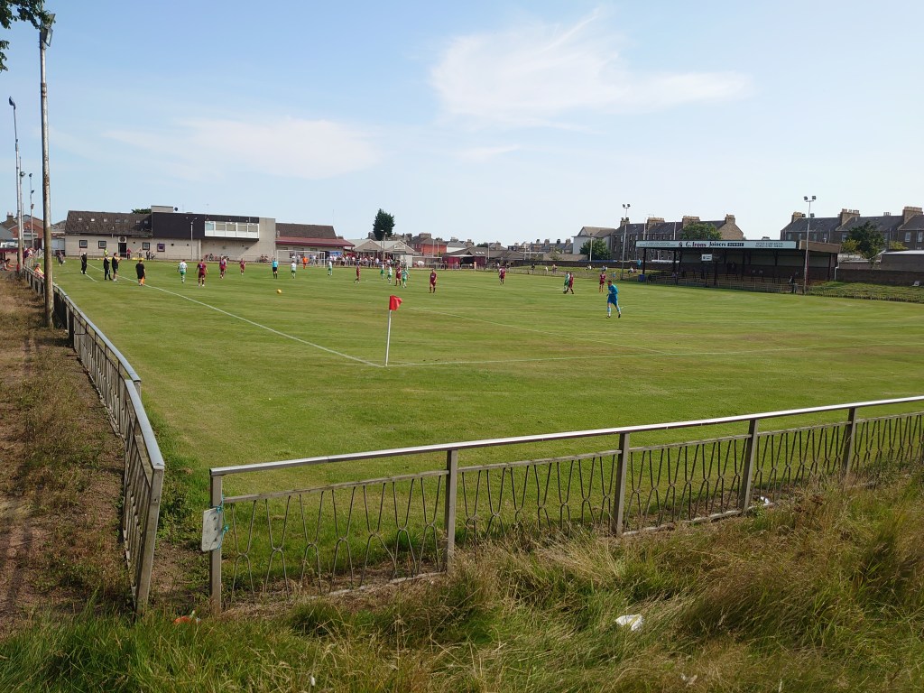 North End Park is a brilliant ground. I don’t know what it is but it just seems like what a Junior ground should look like in my eyes. Enclosure on the wing, social club adjacent, standing room around the rest of the ground, well maybe not behind the goal as its over grown and in need of a wee bit of tlc. I am a big fan of this historic old ground which used to host Scottish Cup second replays way back in the day. It is definitely my favourite in Dundee(Only East Craigie and today’s visitors left to visit).