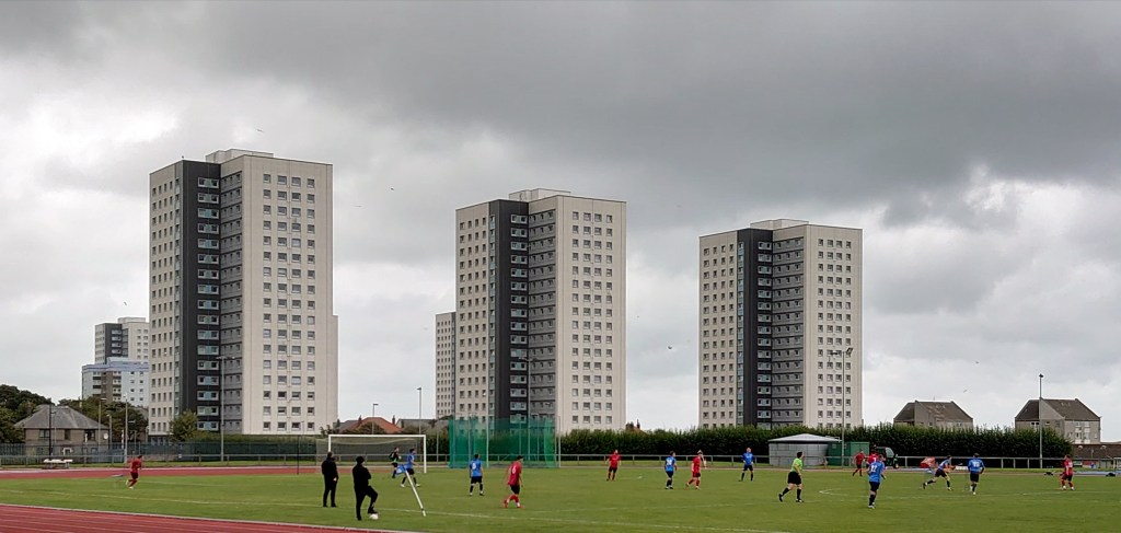 A lot has changed here since the old Chris Anderson Stadium days and that doesnt necessarily mean for the better. I loved playing at CAS when Lewis United were the tenants. (I once destroyed 4 teeth on an elbow there) I also watched a few matches from the old stand too, But this place just doesn’t have the same appeal I am afraid. The pitch seems like a mile from the stand with there being a running track and more between you and the action. However its no Hampden. The pitch also seemed to be awfully bobbly. Also to be noted is you have to leave the place and head to the cafe to get a coffee, a huge no no for me. But it is not all bad, I like the highrisers looming over the north end of the ground in a Pollok (Newlandsfield) type fashion. But the most excellent and unique quirk is, the far side perimeter fence is the same perimeter fence of East End’s New Advocates Park meaning that these are the two closest Junior grounds in the country. Or even just grounds in general. I am certain this is the case. This meaning every cheer, grumble and whistle from there was audible to us in the stand at the Sports Village. (East End beat Maud 4 v 2 for the record).