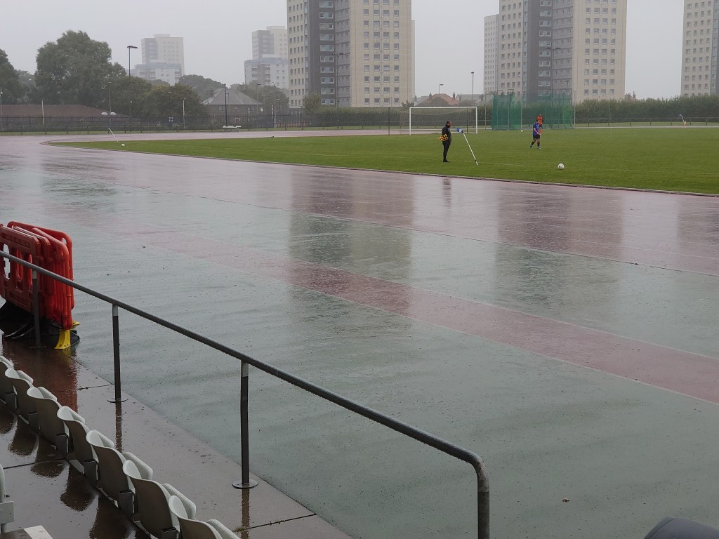 This was not the original plan for the day. With “Scottish Groundhop” on the cards down in Midlothian, visits to Dalkeith Thistle and Bonnyrigg Rose were plan A. But with severe weather and flood warnings set for when we would be returning home, I was put off especially with Wee Man in the car. The Aberdeen Sports Village it was to be. A local ground saved for a rainy day. And you dont get more rainy than yellow rain warnings .