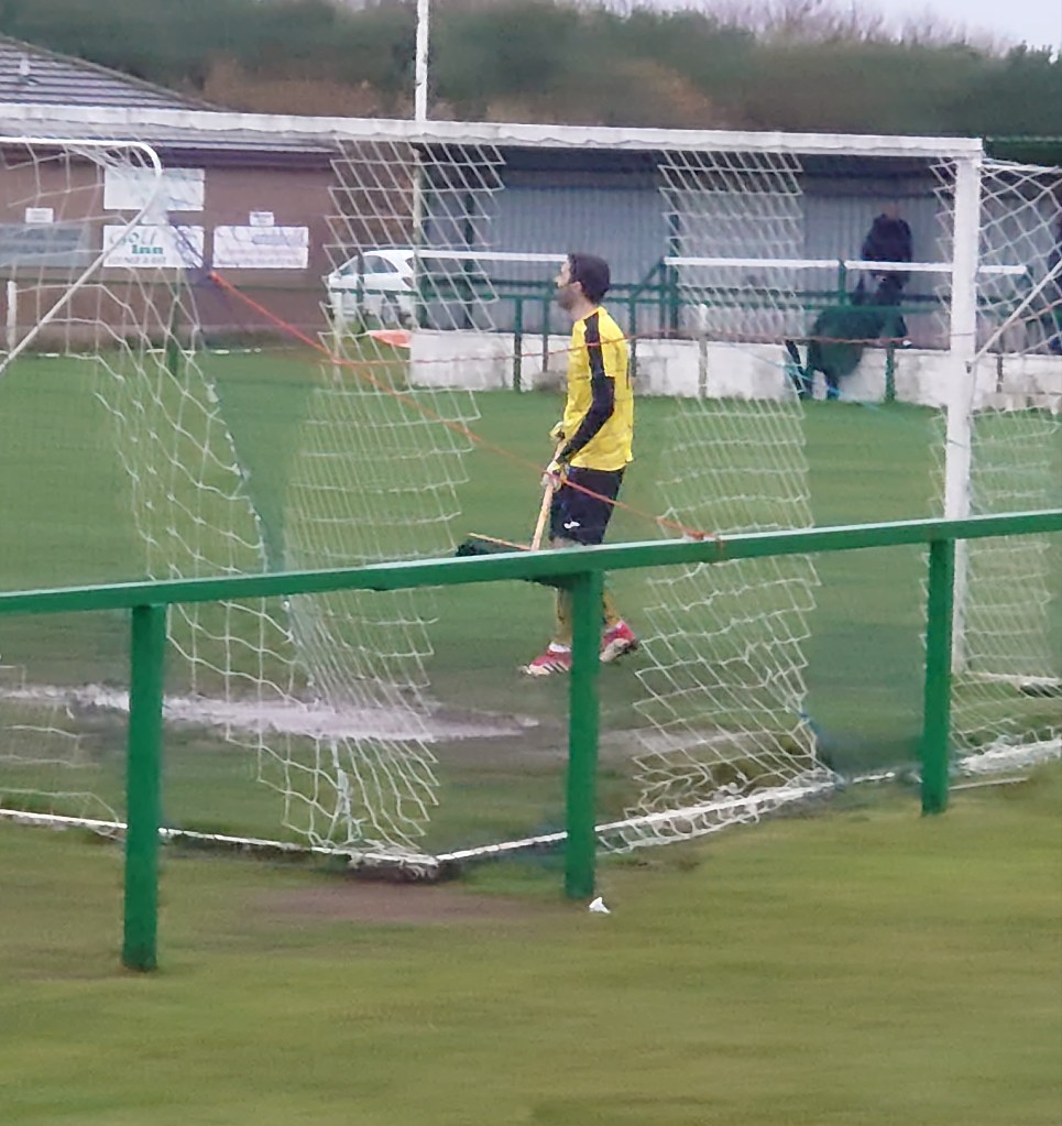 Over the break the rain hitting the enclosure seemed to quadruple in decibels. The abandonment thoughts continued as I watched the Bridge of Don subs not even bother to face a warm up as they hid in the dug out for fifteen minutes. As the management appeared out of the club house they leapt to their feet and pretended they had been at it all break. Sneaky buggers. More amusing than that, Bridge of Don keeper Andy Shearer had grabbed a broom and was brushing the water out of his goal mouth before the restart. Quite the sight.