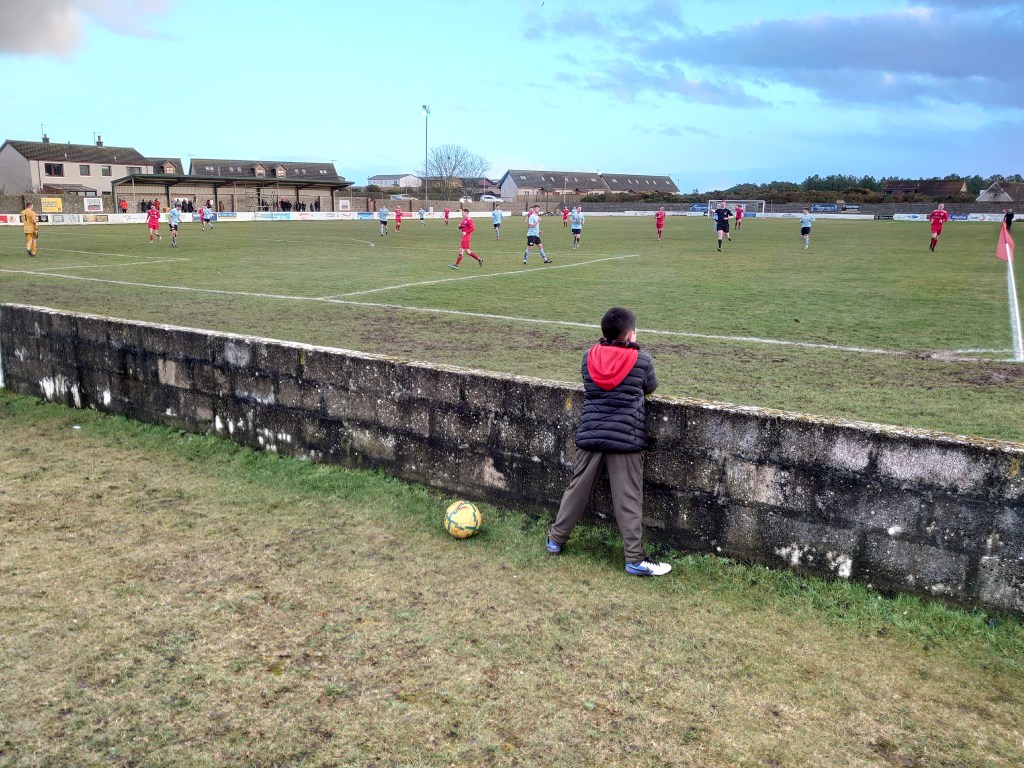 The reason for Grant Park today, a few. Within one hour from home which was asked by AVFTT. Highland League ground(my rule as it is the best league in the world) and Wee Man had never been. It was a cracker to pick too. On arrival we were welcomed by the squawk of seagulls as we opened the car door. Grant Park is not know as the “Bernagow” for nothing. However, the welcome at the turnstiles was better. A decent chat with Lossie committee members who were all Hearts fans which I found strange given Grant Park is one hundred and seventy five miles from Tynecastle. But even more strange I was informed there is a big Hearts following in Lossie. Each to their own and all that. It’s not glory hunting at least. This conversation led to Wee Man being gifted a tourie to mark his special day. A great gesture from the club.
