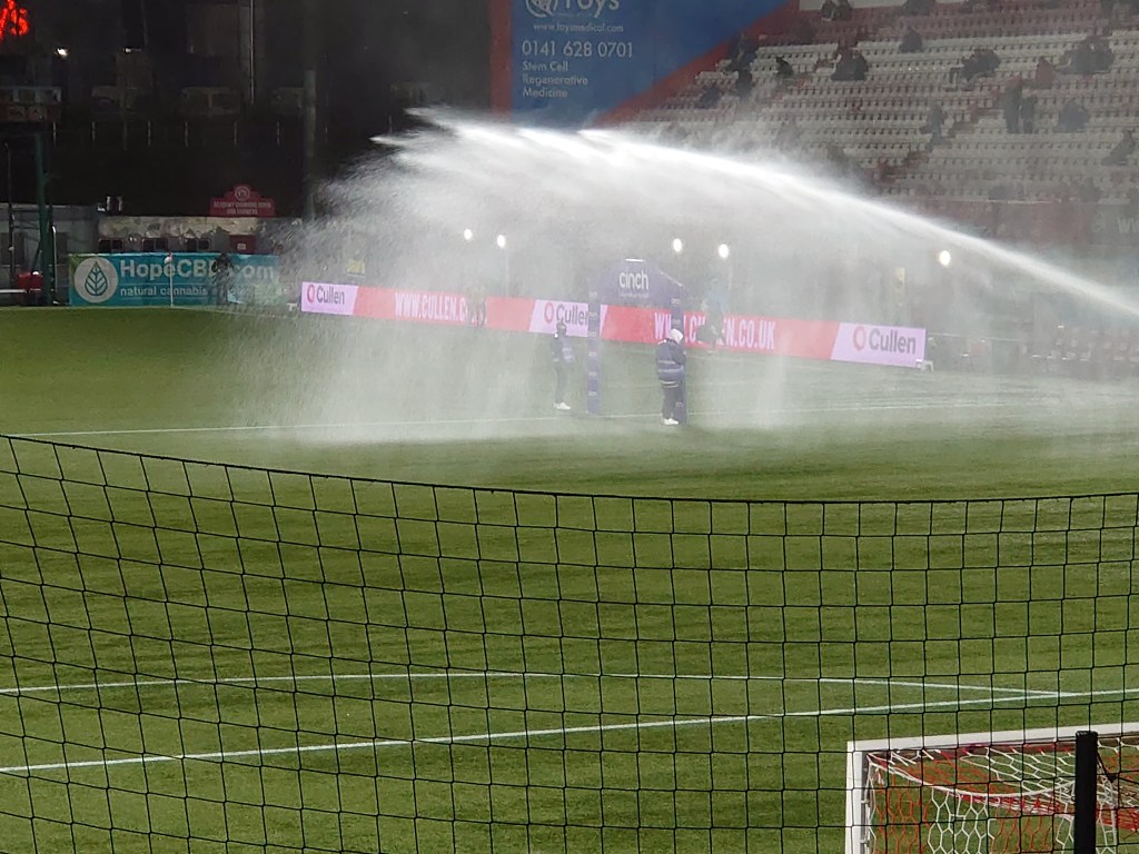 As stated this was end to end and right from the off too. The first big chance fell to Josh Mullin who headed a corner over the bar. He surely had to hit the target at least but he sent it over the bar in the direction of Wee Man and me. The Accies did take an early lead not long after and it was Mullin making amends for his earlier miss when he was gifted the ball from some terrible defending from ICT, but that doesn’t take anything away from the strike that followed. A cracking hit across the goal and well out of reach of Cammy McKay in the visitors goal. I’ll need to see it back to see how good, but I do know for sure, the defending was dreadful. The game continued to ebb and flow but both teams didn’t have the final product. Robbie Deas was unlucky when he headed a cross goal ward but it was cleared off the line by an Accie’s defender. The equaliser came in the thirty fifth minute when an initial shot was blocked well but fortuitously landed at Sam Pearson who struck home with ease. One all and fair going on how the game had panned out in its constant end to end fashion. Something else that was constant was the poor officiating from Alan Muir and his cronies, it seemed as if they were tossing a coin for everything, this creating some animation on both benches with Stuart Taylor and Billy Dodds losing the plot often. So much so Doddsy was even seen to thump the dugout roof ( I am surprised he reached). The half ended with an extremely dangerous ball being played across the Caley box but Moyo, Mullin etc could not capitalise.