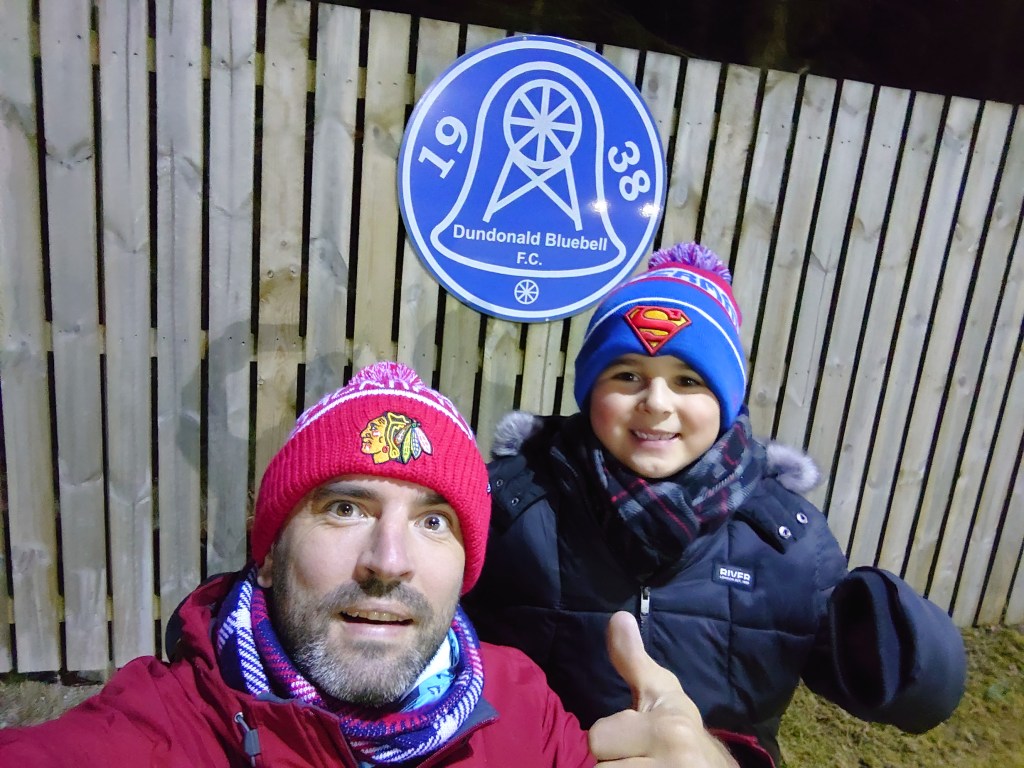 Fife for a midweeker seems a bit mad with Junior in tow but there was reason for the madness. He needed to tick of his 99th ground before Saturdays visit to Pollok, the club he has chosen to celebrate his milestone and with our plans set in stone we needed something this week. With the AWPR a trip to Fife has been drastically reduced time wise and with lack of traffic, a visit to the Bluebell only took us one hour fifty minutes to get home from. Its not as bad as it sounds, a later alarm in the morning will fix everything.