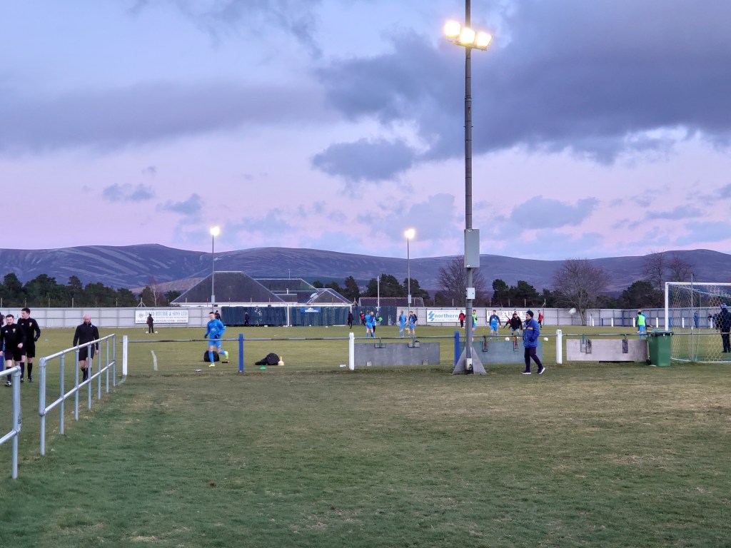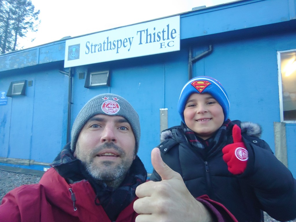 A rare Wee Man Wednesday for me and when he asks for fitba, I am not going to say no. Usually I would be donning my chefs hat and watching films with a few beers in the company of the other greatest human on earth, but a late change of plans saw the father son combo instead. With Wee Mans’s quest for fitba and the time of the season, there was only one place to start, the Highland League title run in. A new one for him but a place I have played and viewed in the past. With the Met Offices lazy just assuming that Grantown-on-Spey would be bloody freezing and snowing did put the doubts in my mind to whether this was a good idea and even drew me towards the Forres Mechanics v Buckie Thistle game for a wee period but we braved it and found that the Met Office were speaking pish. Snowing on the way there, nope, snowing at kick off, nope. Sub zero temperatures, again wrong. On arrival at Seafield Park the hills around Grantown did not have a drop of snow on them. I would even say that Oldmeldrum was suffering worse weather than the Highland town. Yes there were a few light sporadic showers but nothing to give a yellow weather warning. Well off, but I will not complain.