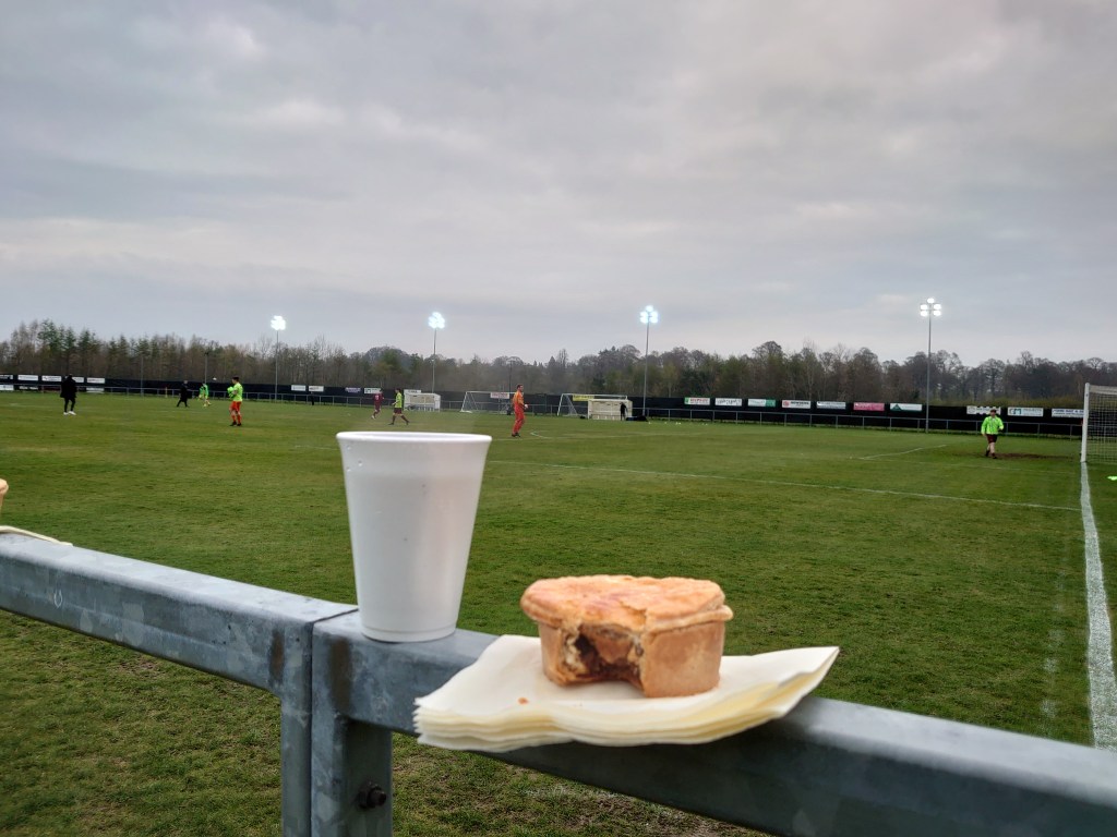 Half time saw the usual kick about but also the unusual me winning the half time draw. Well third prize which saw me win a fiver. Tynecastle’s late first half resurgence was extremely short lived. Within seconds of the restart it was 4 v 1 when Lowe was on the spot to tap home a McLeish cross from close range. Surely game over. If it wasn’t it was a minute later when Jeanfield rattled in a fifth. A stunning inch perfect ball through to Keilour Lowe was finished off with ease just like the visitors seemed to be. It could have been worse for the Edinburgh side too as Swifts missed a some simple chances, all headers from crosses. Some of which were absolute sitters. Also added into the mix was a missed penalty when Jackson stopped McLeish bagging a hatrick. It looked a poor penalty rather than great save but the keeper guessed right all same. Tynecastle were screaming for a penalty again shortly after when Ponton was challenged by Mitchell in the box. The big keeper slid in with a perfectly good challenge but it led to mass remonstrations from the bench and players. Wee Man and me had the best view in the house and I can assure everyone it was a great tackle. A sixth came on seventy eight minutes and clearly Jeanfield were saving the best until last. Chris Dodd take a bow sir. From twenty five yards he stuck his laces through the ball and let loose a howitzer into Jackson’s top right corner. It was so hard it looked as if Jackson dived after it had passed him. As sweet a strike as I will see all season and the cherry on top for the Swifts. The scoring may have ended here but it really shouldn’t have as the hosts again missed a few good chances before the final whistle brought this highly entertaining match to a close. As stated above, I am not a fan of teams getting a hiding but it was hard not to really enjoy this match, one that is potentially the last of the season for me. If so its a good way to bow out. Oh and the pies were bloody fantastic too, I had a feeling they would be.