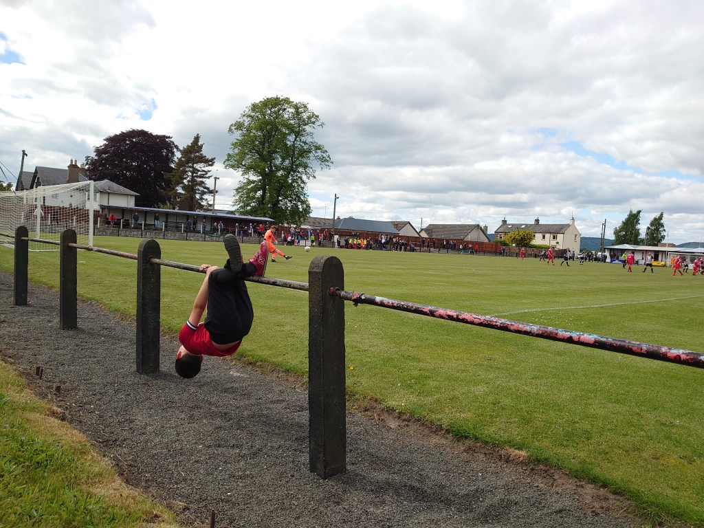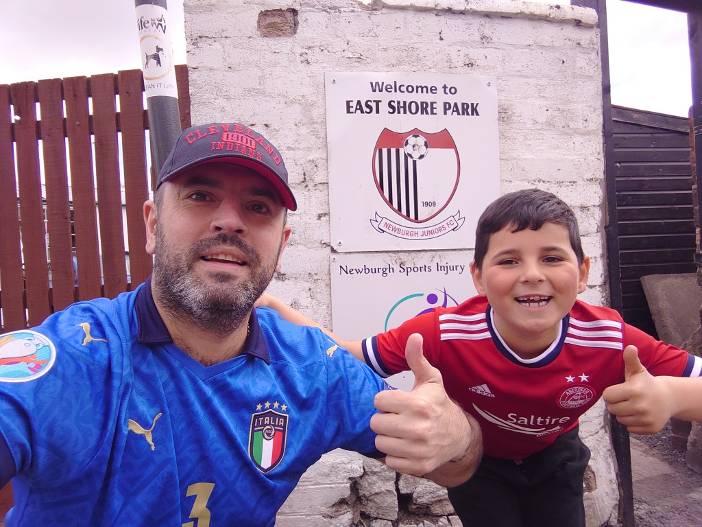 On arrival we were met by some of the clubs committee who included an Aberdeen fan, this starting off a quarter of an hour conversation (Wee Man’s Dons top instigating). All things Aberdeen, Aberdeenshire (the committee lady was once of New Deer) and Newburgh JFC. We also got on to the town and my initial impressions seemed to be correct as it was bigged up by them all who seemed to love the place for its peace, quiet and safety. As we had traveled Wee Man was gifted a club badge. An excellent gesture from what seemed to be a really friendly club who I have to add play at a quality cozy wee ground. I left as a big fan of East Shore Park.