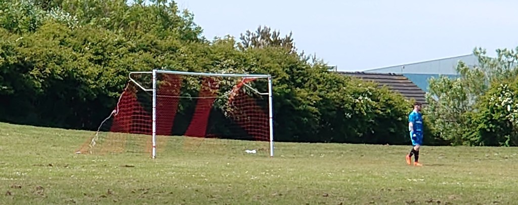 Where to start with this game between two teams named after pubs(Fraserburgh and St Fergus based). How about the pitch? What a midden. The grass was long and the last batch of cuttings were still scattered across it. A half assed job to say the least. I did wonder how if this would ruin the game somewhat. It didn’t and game wise it was a bloody explosive start which is probablly an understated way of putting it. With early chances to Haven squandered in the first couple of minutes this signaled how this game was to pan out. All attack and no defence. Haven had an early goal ruled out for a foul which i think was correct. Then on four minutes The Lizzie were in the lead when Clint Cassie headed home a corner from five yards out. This lead was lucky to stay in tact after Haven went straight up the park and squandered a good chance when Malloy hit one over the bar when he knew he should have scored. It wasn’t long and the ball was in the net and it counted. The equalizer came when Haven’s Danton was given the freedom of the Broch in the middle of the box, a cross in from the left found him, he had so much time he managed to get his feet tangled, correct himself then finish past Bain in the Link Up goal without a defender near him. Haven then took the lead immediately when PA Bruce knocked home from close range after a brilliant team goal that saw the ball knocked around three quarters of the pitch length. A brilliant multi-pass goal on the eye and only eight minutes on the clock. Link Up were aggrieved soon after when they had the ball in the net for what they though was an equaliser but the referee decided that the Haven keeper Gerard had been fouled in the build up. I would doubt it was a foul but maybe in today’s watered down game its the rules. Soft in my eyes. This game was fast paced and end to end and from a neutral perspective a great watch. The equaliser did come when Robertson struck a long range effort which Gerrard saved well, then saved again at the feet of the oncoming Link Up striker which ricocheted the ball back to striker Sutherland who prodded home. Haven then had a goal chopped off for offside when after running the ball down the right losing the whole Link Up defence, Malloy played a square ball to Danton who tapped home. Absolutely onside but it wasn’t to be. It was now 1-1 in poor refereeing decisions. The legitimate scoring immediately continued and it was the visitors who took the lead when Danton wowed Wee Man when he rounded the keeper and rabona finished into an empty net from twelve yard, “wow that was magic” to quote him and to be fair I clapped it as it was a special finish. The to and fro game continued and Link Up were next to score. A through ball saw Shane Wall burst goal ward, Gerrard came rushing out out and it was the Link Up man who got there before the keeper or the defenders with a swift poke of his toe to send the ball into an empty net. There was hardly time to note down goings on this game was so frantic and before the half was out the Lizzie took the lead with the seventh goal of the game when Gerrard punched a cross into his own net. Sun in his eyes perhaps? Whatever the case Link Up didn’t care and neither did Wee Man and me as this game was a cracker and well worth shunning the big games for. To be noted before the half was out, the referee stopped play at a corner and headed to the corner before it was taken and demanded the ball was put in the quadrant. This pleasing me as it is a pet hate of mine stemming from many years in section Y off the South Stand of Pittodrie where I used to see various players steal half a yard numerous times every other week. A silly bugbear but one I hold. Well done ref.