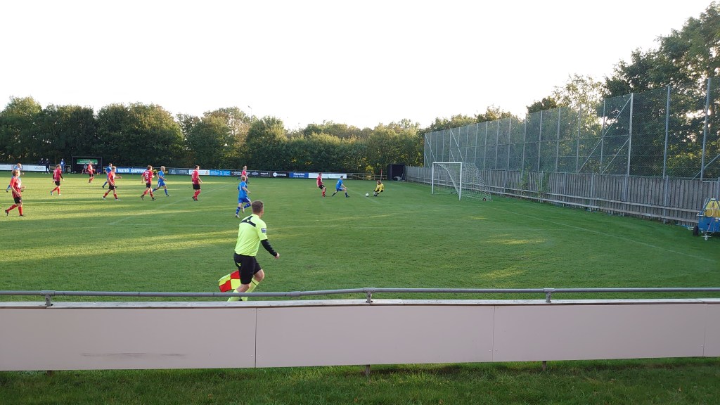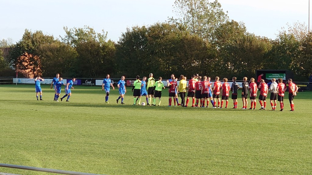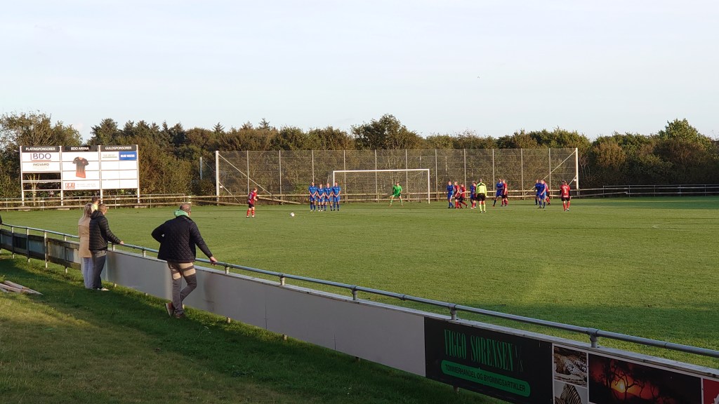 The second half opened with a another superb moment when Dannells managed to keep the ball out with a terrific low save, one in which he managed to claw the ball out from behind him, looked like he was beaten but incredibly the big keeper scooped the ball clear. He was soon beaten for the third time when Morten Vagne managed to get to the ball first on the goal line before two defenders. Hjerting celebrated but the ref went with the shouts and belatedly disallowed the goal claiming Vagne had kicked through the defender before the ball. Frandsen continued to terrorize the Tarp defence and was brilliant throughout and you could tell he would be the orchestrator of more action and he was creating chance after chance but none were taken. Final the ball was in the back of the net when an eye of a needle pass was threaded through by Niclas Munksgaard leaving either Vagne or Andersen to score with the former slotting past Dannels. At this point it looked as if there was only one winner and more chances came the hosts way inclusive of the bar being rattled twice then with two minutes left Tarp got themselves back in it with a cracking team goal. Some great work down the left saw a brilliant ball swung in where Poulsen rose to smash home a header leaving a tense finish where Tarp threw everything at Hjerting including themselves into challenges trying to grab a late equaliser but it wasn’t to be for the team from 5 miles away and the points were to stay in Northern Esbjerg and the brilliant Hjertinghus. A very good match to watch, full of action and all for free too. What’s not to like. Who needs the pro game when you can come to a place like Hjerting?