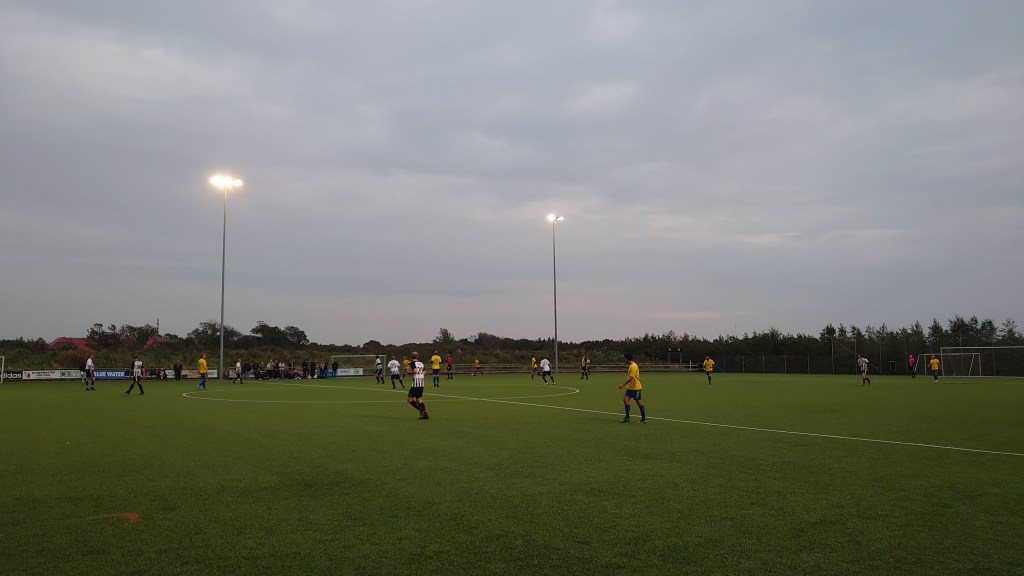Dipping even deeper into the DBU pyramid I found myself on the outskirts of Esbjerg to take in tier 11 game between the fantastically named hosts and their opponents from fifteen miles down the road. Not the original plan for the night but with the local pros Esbjerg FB cancelling their match v Thisted due to Danish U21 call ups I was at an enforced loose end. Never one to be bothered by staring in the face of adversity I found a ninety minutes to watch. Before I set of for work I looked up teams from the city and obviously this one stuck out, the plan was actually to watch them next weekend but needs must and they were brought forward seven days. Playing out of the Guldager Idrætscenter under the lights and on the 3G pitch the Lions seem to be a close knit team from what I gathered going by the banter between fans and players. I perched myself next to the dugout and was immediately in conversation with Harald who turned out to a wealth of information on the game and helped with a few details. Unfortunately, not where the name came from though. What he did explain is how the leagues are regionalised. This I knew but I was not sure how far a region stretched. He told me Bramming would be at the furthest extremities of this region meaning teams are no further than 15 miles from each other. He also told me Bramming B were probably the best team in the league. This making me think a big score was coming,