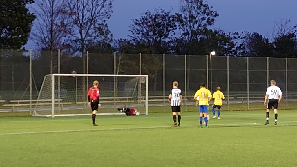 The match went the way it was expected. Bramming’s Frederick Forum brought out a decent save from Lions keeper Hansen in the first minute and from here it was one way traffic. Bramming were finding immense amounts of space all across the pitch and it was only a matter of time before they scored. The first goal came from Mads Elholm who was expertly put in by team mate Jeppe Staehr, the striker’s first effort struck the post but he made no mistake with the rebound. It didn’t take long the score to be doubled when Forum was found in acres of space inside the box to slide home a composed effort. At this point I feared the worst for the Lions. A third goal came or so it was thought when Viuf struck a sensational effort from a tight angle which hit the bar, then bounced on backspin out of the goal. The referee gave it, then the referee taketh away. Strange decision. It was not to matter though. Coconut Lions struggle got even worse just prior to half time when Thomas Holm was sent off for handball on the line. But Hansen managed to save the resulting atrocious penalty that followed from Lasse Viuf. By atrocious it was really awful .