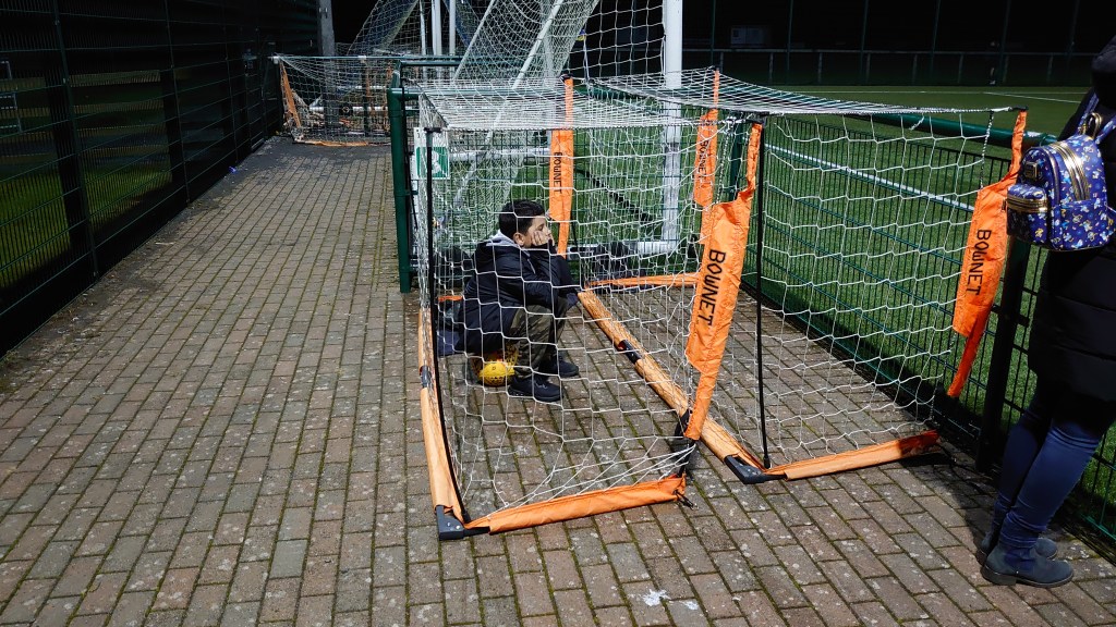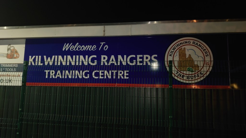 Decent enough viewing and something to do to fill in time. Good to see the set up although it was in the dark. Also coincidentally, we got to see “the bleacher” at Buffs Park which the last time we saw was when visiting Benburb 20s in this exact trophy which was the last time we watched a game at the level the guts of a year ago. It has made a lucrative transfer south from Govan to Ayrshire since that soaking wet night at New Tinto Park.