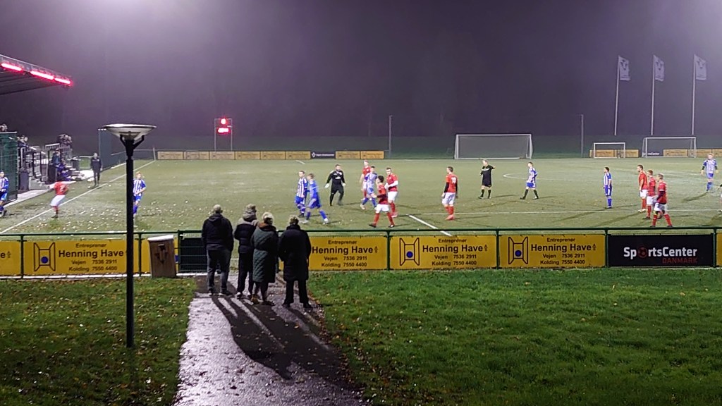 A completely random and last minute find. But a game is a game especially when doable after work. By doable this included a run to Esbjerg train station from the office, and an even faster run from Vejen station to the ground being needed, this shaking up my pre bought Carlsbergs for the match. Making it right on time for kick off I was back chasing DBU Jutland lower league bliss again. The first of two in consecutive nights and what a choice. This was fucking brilliant. Nothing could dampen it. Not even getting my favourite Sambas clarted in dubs or the rain that appeared towards the end of the game.
