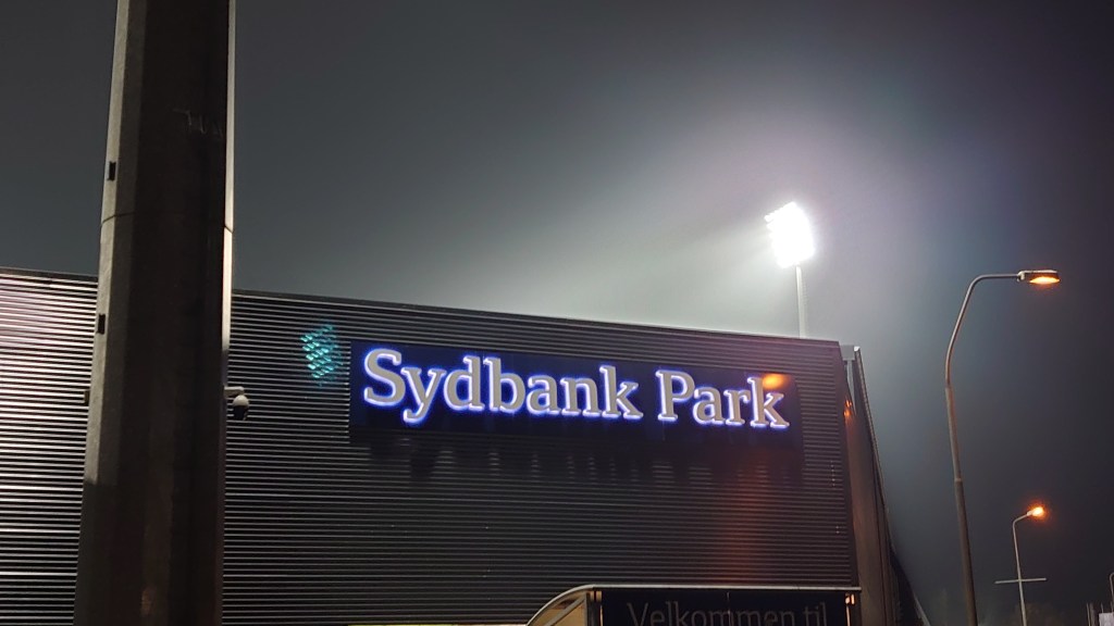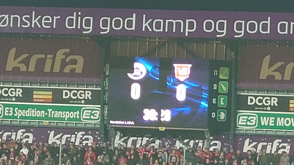 Danish Monday night fitba again, this time at SønderjyskE (pronounced Sooneryoosk and meaning Southern Jutlandic), after last weeks damp squib in Herning I was hoping for a much better serving in Haderslev. I need not have bothered. This was equally as bad. It offered very little to stimulate my brain. What I can say is Vejle looked technically better had and have some fleet of foot players in their side. The game really was dire and again the sausage and beer was the highlight, the same as the previous week. But maybe that is not fair on Arbnor Mucolli who’s 93rd minute winning free kick was a sublime hit.