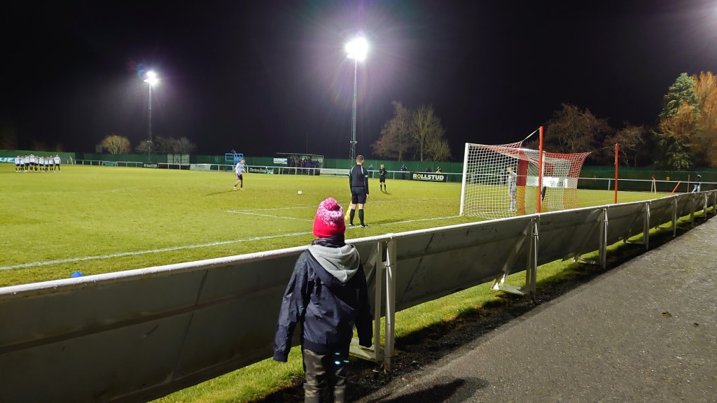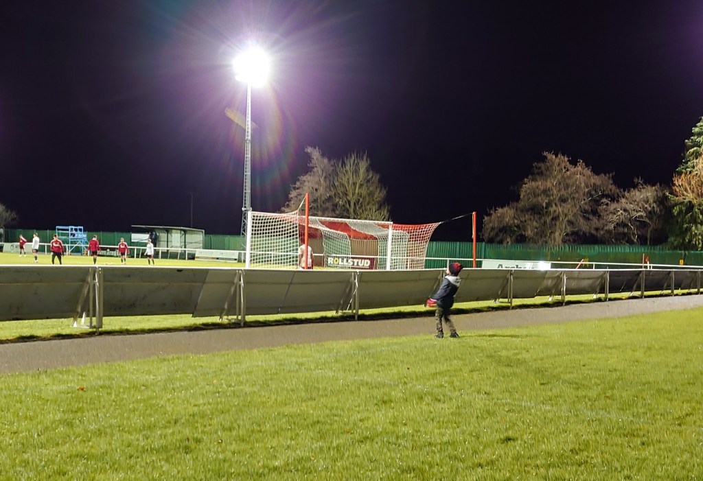 As we got to North Lodge early the inevitable kick about took place. Not using the training goals as it was too dubby. This starting the night off on a shocker for a gutted Wee Man. But this was not to last. This because he pulled off the most impressive thing I have ever seen him do with a ball much to both our surprise. After knocking the ball about behind the Dons goal during the warm up(being interrupted numerous times by stray shots that Wee Man retrieved) he noticed a shopping trolley beside the gate. A full twenty five yards away he shouted ” I have a new game, get the ball in the trolley” as he nonchalantly caressed a lob up and down straight into the trolley. Bearing in mind he is eight, it was unbelievably impressive. He never managed it again. But he didn’t need to. The first effort was bloody brilliant.