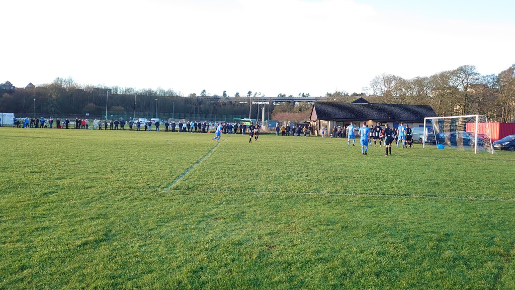 After a quick blether with a couple of Tarves fowk I know(I live 4 1/2 miles from Tarves) i was writing down the first goal of the match. A goal that dropped the heads of the Tarves touchline given how it came about. In simple terms. A corner and a free header for David Salmond who lept well and nodded home with ease. This seemed to be a recurring theme as Cowie were clearly dangerous in the air and Tarves couldn’t get near them if the ball was airborne. Despite the quick fire start to the half it really was lacking in action and in all honesty, quality. The home side tried to play football on the deck, Tarves seemed far too one dimensional and resorted to the punt. The highlight of the half for me was when a Cowie man was elbowed in the chops on the Tarves fans touchline (accidentally I may add). This led to a “fucking hell referee” shout. This leading to the adjacent Tarves punters to lambast him with the likes of “ya prima donna bastard” “ye fucking fanny” “it’s a fucking mans game” then immediately within ten seconds a Tarves boy does a Neymar 20 roll effort on the halfway line in a nothing challenge screaming and greeting then gets to his feet straight away as he didn’t get the foul. Brilliant comedy timing leaving the Tarves travelling fans silent. But actual game action upped when Tarves grabbed an equaliser despite it being a gift. But they all count. A long ball was not dealt with by defender or keeper leaving Tarves striker Davidson to sneak in and deftly lob the lost Miller in the Cowie goal. The scrappiness continued and saw the half out taking the AAFA Premier rivals into the break even.