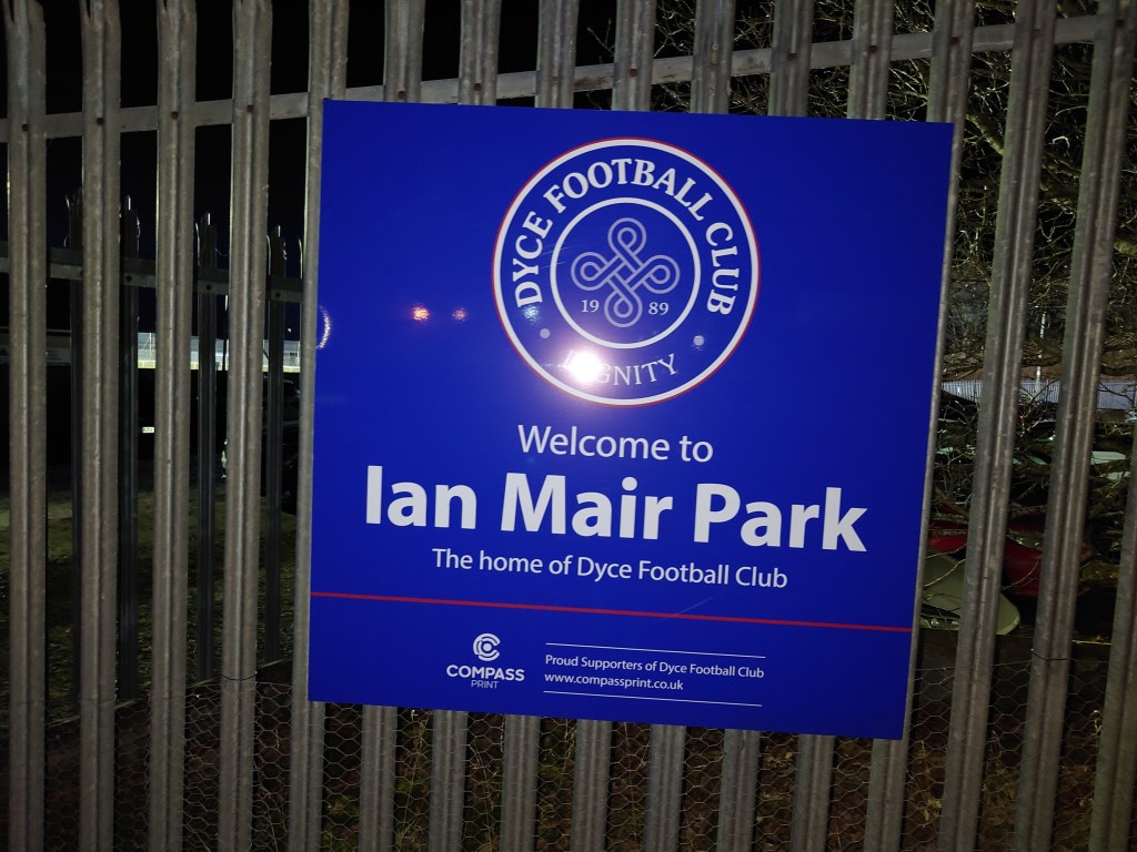 Back on the fitba trail with the sidekick after my latest trip away. What better place to do it then Ian Mair Park under the lights (and what seemed to be a lot of offshore choppers for that time of night). Looking at the table going into this, leaders Culter could open up an eight point gap on nearest rivals Hermes who are in cup action this weekend. Dyce on the other hand would close in on Culter and take the deficit to 5 with a win. It had the makings of a decent night on the city and ‘shire boundary.