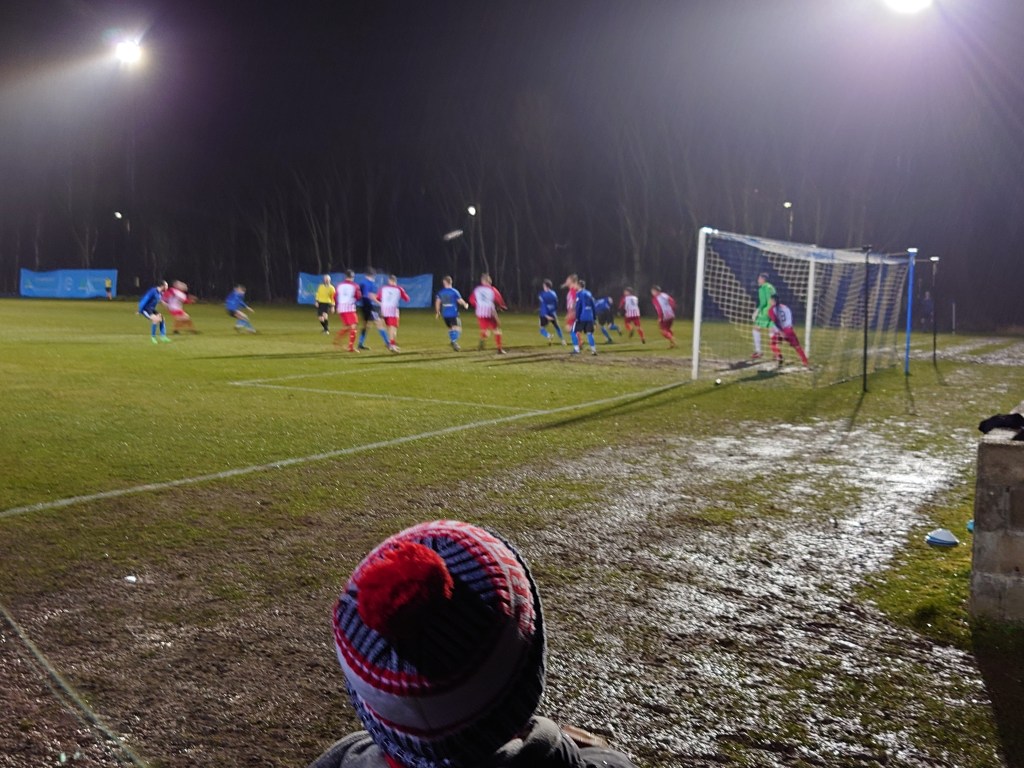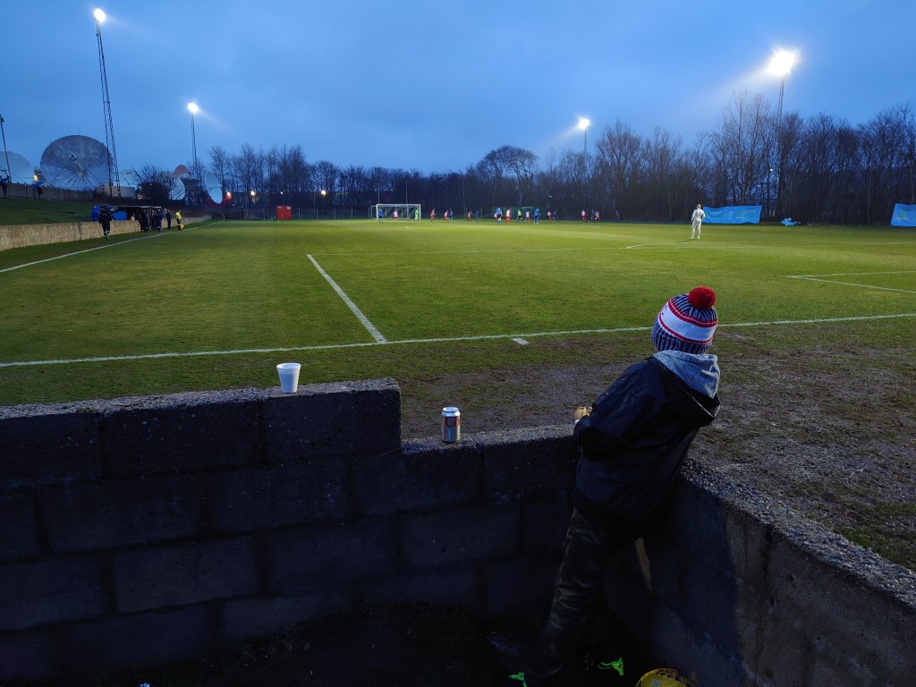 Then to the game, the dirty grey skies, the incessant down pour, the lack of crowd (Scotland and the rain playing their parts surely) and what really was a turgid 90 minutes that unfolded in front of us. Hermes were the better team despite being caught cold in the first few minutes where East End were in their faces with Stewart narrowly putting a powerful effort millimeters over the bar. But once on it the hosts were quick and looked dangerous going forward but they did not create much in terms of clear cut chances (the cleanliness of East End keepers Zakk Ellis’s shirt come half time was testament to that). They had a couple of efforts from range that were close and a chipped shot from a tight angle from Youngson which was the biggest chance of the half but nothing to trouble the big keeper. A poor half of fitba with the steak pies being a delightful highlight. Another grievance to be added to this game is the bloody black numbers on the Hermes shirts. Almost invisible on the blue of the top under floodlights. (Pretty sure i moaned about this earlier in the season)