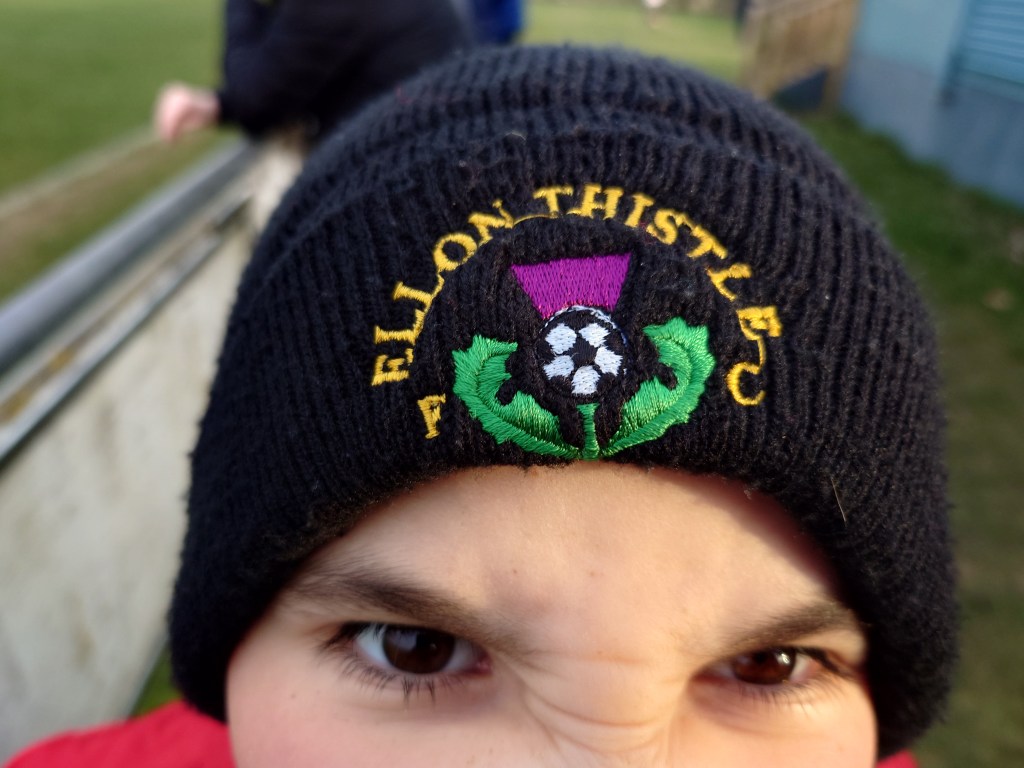 We arrived to slight disappointment as Wee Man was not going to rack up another ground as the game was to be played on the Ellon United pitch instead of the the usual which Thistle and the Amateurs share. I found this strange and never did get to know the reason for it. As long as the right Ellon won, where it was played was irrelevant. “Played” may be overstating the first half. It was not pretty. There was a lot of “second touch was a tackle” type action and very little entertainment. It was scrappy but even. The Amateurs looked a lot better than they did earlier in the season. Thistle looked like they had forgotten how to play football. They did create two good chances though. The first fell to Michael Moffat who did everything right and unleashed a powerful drive from 15 yards only to see Alex Lyall pull off great save to his left with his upper right hand. The next chance fell to Nick Price who burst into the box from the left but he screwed his cross goal effort just wide. That was about it for the half. To be honest, catching up with my old Thistle teammate Stevie High was more exciting than goings on on the pitch. (A top man is Stevie for the record)
