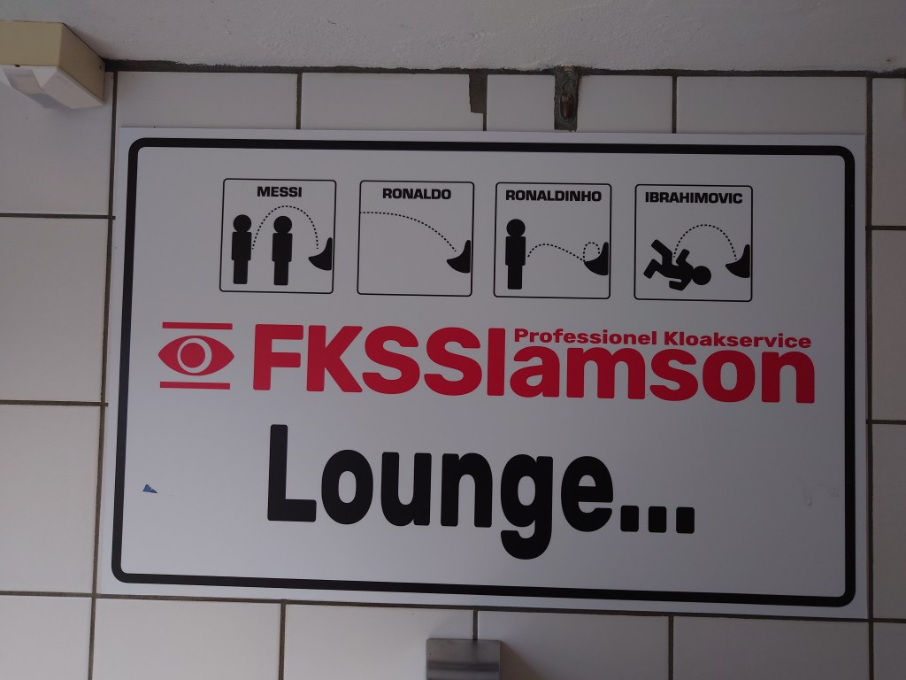 Half times seem weird without a kick about these days. So it treated myself to another sausage and pint which was accompanied by some more chat from locals. This also threw up the best sign that I have ever seen in a toilet. Not that I search out toilet signage frequently