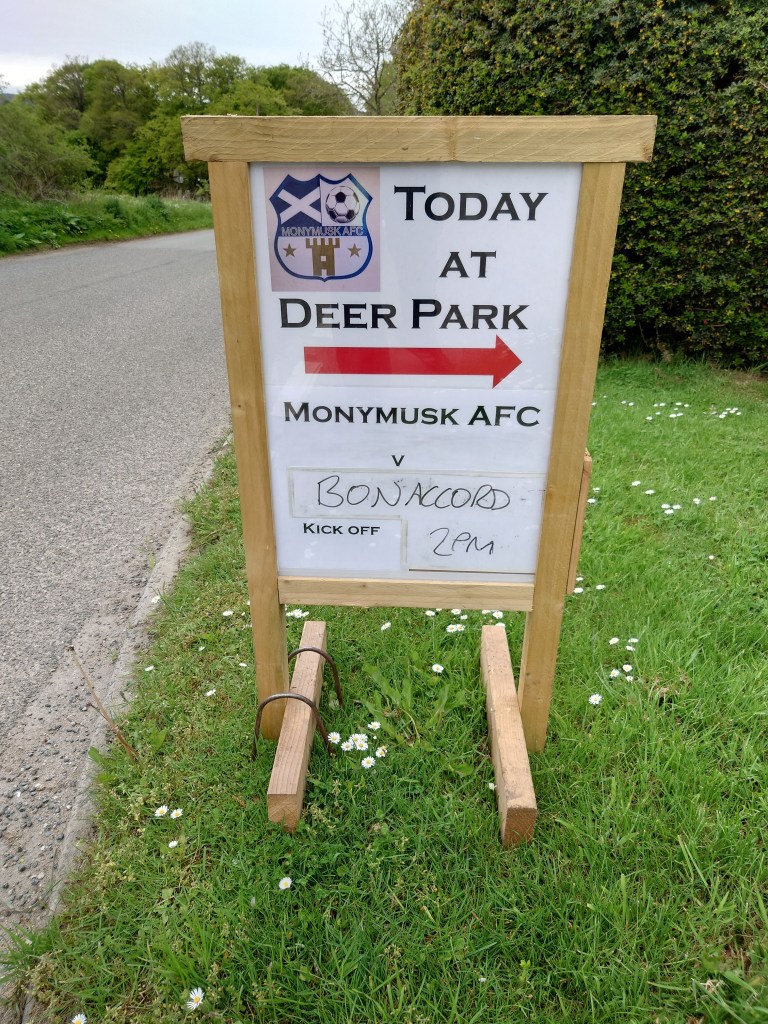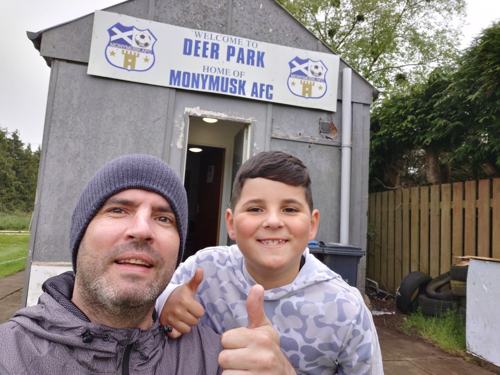 As far as plans were today didn’t go exactly the way i was hoping. A lot of stuff going is gong on in life just now. But the Wee Man is there by my side to keep me going. With the night dedicated to watching Ellon Thistle in the Dickie Trophy final at Rothienorman a game during the day was not on the cards. Then things changed and we planned on Insch v Kincorth to allow us good time to get home for the bus to Rothie. Then early on Saturday, Bon Accord City posted that their home game v Monymusk had to move to the shadow of Bennachie as there were staffing issues at Balgownie(not the first time this month). An anomaly where it allowed us to see the away team at home.Perfect for us as Wee Man had the Musk on his list to visit.