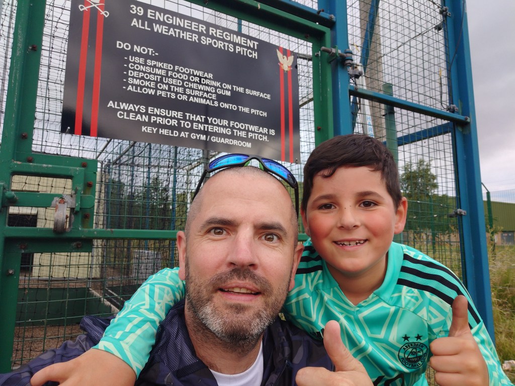 We jumped on the park for a we kick about at the break leaving Wee Man’s top black due to the crap you get in these fake pitches. This after speaking to a Sappers player who was a great source of info and made me want to watch the Sappers v Fort George in the Army leagues. It is a “proper derby” I was told. I will definitely be looking out for that. Hopefully I am home for the match at Fort George. The teams were back and the game was much more open and had a lot more action than the first. The Sappers took the lead when the burst forward at rapid speed after a ball over the top from Hubbard, Brownie received it an cut in, but instead of going for glory he squared to Rendall who lashed home. Then the Sappers were given a chance to extend their lead when again on a quick fire break Brownie was wiped out from behind by McCarten. But before the inevitable red for the defender was shown, Brownie lost the plot due to the tackle on him, this sparking a rammy which lasted a few minutes. The striker seemed to throw a punch and was dismissed for his daft actions. Then the teams were levelled up when McCarten finally got his marching orders for the original infringement. Hubbard stepped up and put the keeper the wrong way. From here the game lost its discipline and the fouls were coming from all angles, this leading to the Sappers being told to calm down by their sideline before they got embroiled in pointless trouble when leading by two goals. The game died a bit from here and went through the motions a bit. Mosset went for it in the dying few minutes inclusive of keeper Lloyd coming up for set pieces, where to be fair he was an effective target man and it was as he was up the Tavern were awarded a penalty. Dave Bromley stepped up an skied it over the bar ending all chances of a late scare for the Sappers.