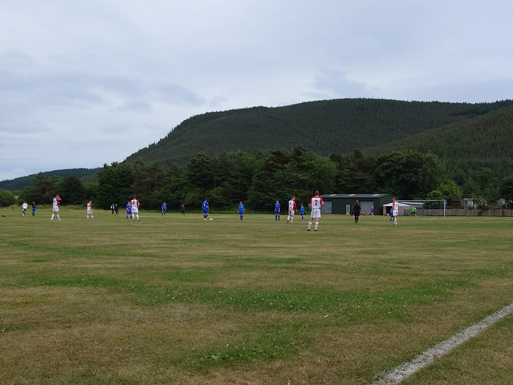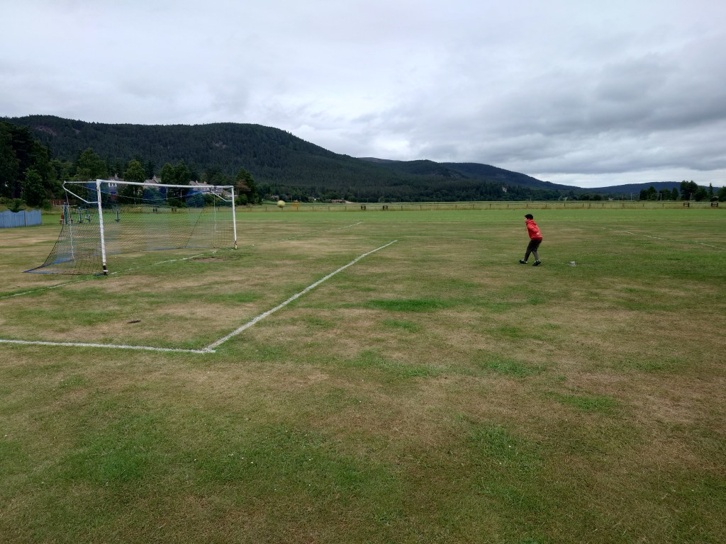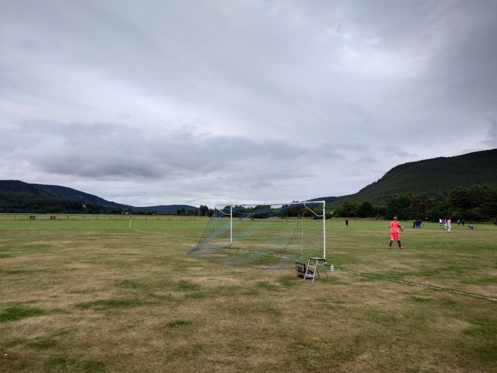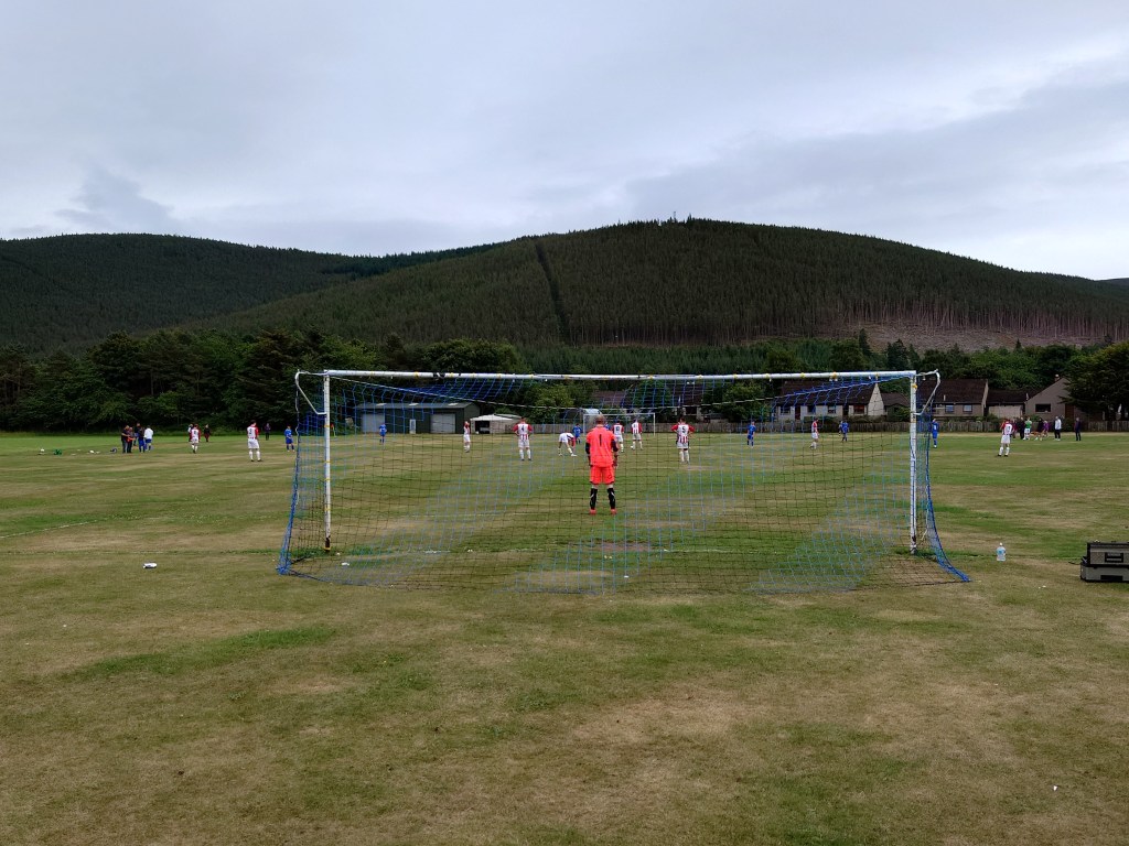 With work coming ever closer the Welfare trail could be over for another year for Wee Man and I. But it has been an eventful summer with four new Welfare FAs visited and further NESFA and Morayshire visits thrown in. This while clocking up around 1200 miles over eight matches. Tonight’s dip into the Mid-Deeside League set up was a first for us at this incredibly picturesque venue. One we had visited prior but were greeted with the sound of heavy weights clanging, bagpipes and American tourists last time we were here. You see Ballater FC play at Monaltrie Park. The home of the famous Ballater Highland Games for over 130 years. And what a place. If this is us signing off the Welfare for another summer then what a place to do it.