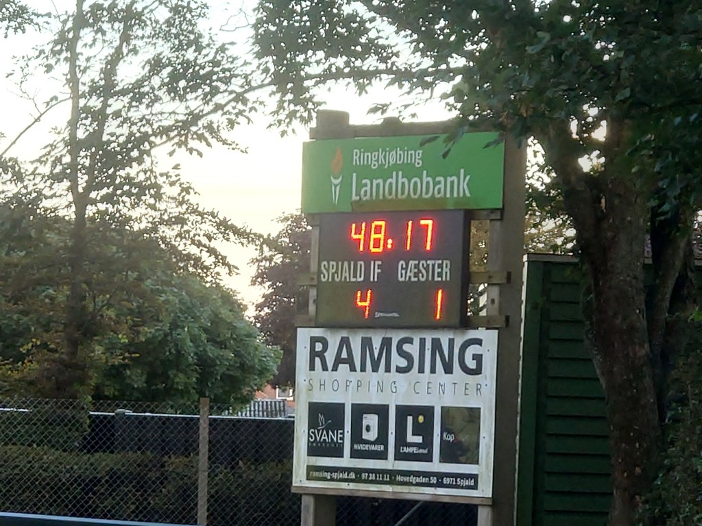 With Loganair surprising nobody with a delayed flight, my plan to head to Viborg v Hvidorve in the Superliga bit the dust as I had no time to get there. As I sat with a pint in the Airport bar, I was not to be deterred and was determined to get a game at night. As I scoured the DBU Jutland website there were plenty of games on, however most were out of reach, Jutland is a big old place for the record. One club jumped out at me. Spjald IF as after a quick check of Google Maps it turned out reaching Spjald was achievable as it lies just north of Skjern. This being a place I had visited in the past for a game and knowing it is on the train line from Esbjerg gave me the first part of the hike to Spjald. (I also knew there was a train home at 21.40 from previous excursions) The second part would have to be a taxi as a bus or train would have taken me on huge detours wasting precious time I did not have. (10th tier)Game on.
