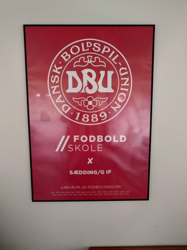 At half time we ventured into the board room at the back of the stand to find three old geezers playing some sort of dice game over some cans of Carlsberg. They welcomed us in and let us have a nose about at the old photos. One of which featured one of said old geezers and he was happy to point himself out. As he pointed my quest for a scarf was looking dead until the chairman of the club appeared to have one. One he was not too keen to get rid of as it seems there was only one . So for the princely sum of my Aberdeen shirt, I acquired my scarf and kept the 100% scarf record going over 96 foreign grounds. A result despite me having to order a new Aberdeen shirt in the morning. The game continued in the same fashion with the visitors continuing to show they were the better team. There was a dearth of goalmouth action though but were were given a red card. This came with 15 minutes to go when a rammy broke out with Tonder’s Mikkel Neesen seeing red for his part in it. Home man Elias Zohner was also booked for his part, however his team were awarded a freekick and Rasmus Copso took it upon himself to stick the kick away. A good enough strike but should the keeper have got to it? Tonder managed to nick one back before the end of the game with Mike predicting it when they were awarded a corner. The ball came into the box and made it’s way into the goal via Villads Moller(I think as the box was seriously crowded). This setting up a tense final few minutes. But it wasn’t to be and back to Esbjerg we headed in a taxi complete with flashing purple mood lighting. A taxi that was also booked by a random local lady as the woman on the end of the line couldn’t understand my Aberdeenshire accent. This starting off a night out that ended in the famed King George Pub. A great few hours out in Esbjerg, be it at the fitba, my scarf quest, in the Indian watching Sebastian melting with his dish or in the George sinking Tuborgs. A year after heading to Denmark for the first time again I have been treated to a great time with great folk. A cracking country and a cracking place to get your fitba kicks as it keepe showing me, over and over again.