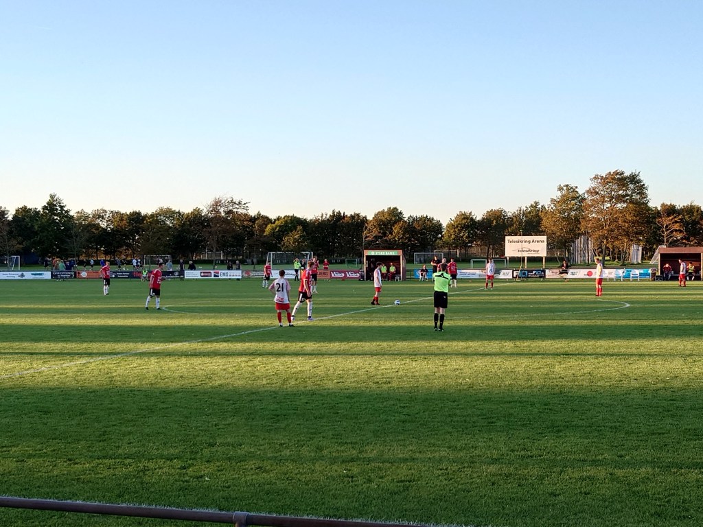 With the obligatory cans and Haribos were were treated to an eventful evening. In a way that the better team lost, that and I went above and beyond to achieve my scarf acquiring. With the sun scorching down we took in the first half from the stand wing and to take in the first half. On the ground it is another tidy example of a Danish lower league set up. The game was played on the showpiece ground with wee 100 seater stand on one side. It wasn’t long until we got the first real pieces of action from or vantage point too when the visitors were guilty of not taking their chances on two occasions. Sydvest 05 Tonder had come flying out the traps and the first quarter of an hour was all them barring one opportunity for SGI that went flying over the bar from close range. It seemed only a matter of time before Tonder would have the ball in he back of the net. Incredibly on 17 minutes SGI took the lead entirely against the run of play when Emil Schmidt in the Tonder goal did well to save a Klaus Jensen header but the second ball fell kindly to Daniel Eliasen who tapped in past a stranded Schmidt who was still on the ground after his initial save. This didn’t deter Tonder who continued to call the shots in the match. They should have been playing against 10 men from mid first half onwards when we were treated to the worst refereeing decision we are likely to see this season. Take a bow Mister referee as this was an outstanding error from you. It really defied logic in how this could have been seen as anything but a red card. Hussein Ozcan broke through at pace toward the SGI goal, the SGI keeper Hellwig came flying off his line at an equal speed and with no attempt to win the ball sent the Tonder forward six foot in the air this around 30 yards from his goal line. Given the brutality of the challenge you would have thought there was previous beef between the two. Incredibly the game was waved on leaving us looking at each other in amazement on the side line as the visiting bench were apoplectic at what had just unfolded. A truly astounding decision.