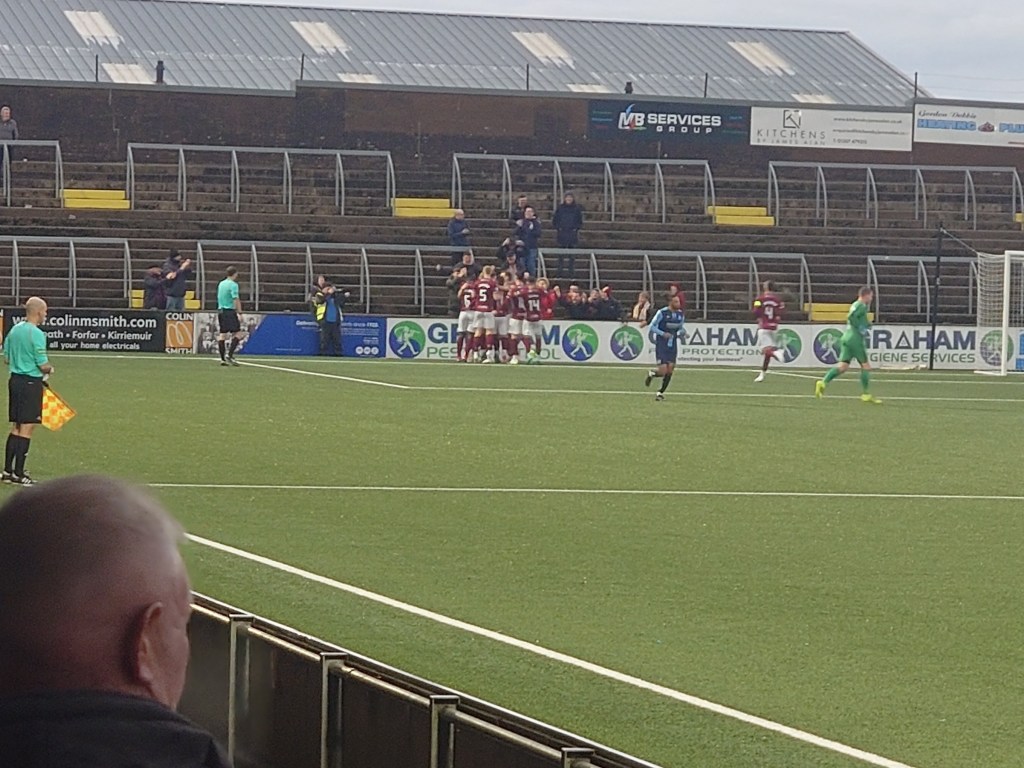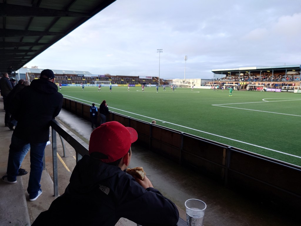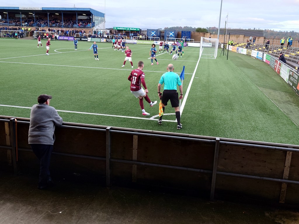 As we headed round to the gate I realised that the cash in my wallet didn’t have the entrance/bridie ratio required for the day so we had to nip into town to find a cash machine. This due to me forgetting I spent hard cash at Spain Park the previous night. Google maps looked to help and sent us two minutes down the road to a local shoppie. As we turned up the place looked like it had been abandoned a long time ago despite still being stocked and the alarm was wailing while no passers by seemed to give a shit. A strange scenario. But most importantly the hole in the wall was off too. Again this pointing at it being abandoned a while back. With time not on our side, Plan B sent us a jog further into town where we had a success at Tesco. But shaved off a chunk of time off of our pre-match kick about. As it turns out there is not much of a scope for a kick about at Station Park anyway so it was not much of loss. Obviously the first port of call for a visit to the Loons is to get a bridie. Or two in my case. Or none in Wee Man’s as being such a boy of routine he opted for his usual steak pie. With the sun at a horrid blinding angle we chose to stand in the South Terrace. The only place I hadn’t plonked myself in the past. Going into it I was expecting a Warriors win given Forfar had one league win all season. But in the early stages I was quite surprised by Forfar. They were the better team. They had the first big chance of the match when Mutale beat his man well and picked out Robson who saw his effort saved wide. A big chance spurned by the hosts. But they were soon in the lead when from the resulting corner Stenny keeper Jamieson saw a punch fall to Nditi whose effort was blocked but the effort on the rebound from Loons skipper Morrison found its way through a group of bodies and in. One nil Forfar and going by the first ten minutes of action. Deserved too. As the coffees are little here I headed for a second and given a some amusement when awaiting my change. A coffee and a Twix cost me £2.30 so I handed over £3. The girl just stood looking at me then had to ask a colleague what change was needed. The colleague looked at me and burst out laughing in a “really?” kind of manner. After getting my 70p back eventually, it was back to Wee Man and the game. Stenhousemuir were unlucky not to be on level terms just as I got back. Maybe I am doing a disservice to Forfar as it was great goal keeping/defending but I do think the visitors should have scored. Yates initially thumped a shot at McCallum who got down brilliantly to stop, the rebound fell to Michael Anderson who delayed for a split second getting his effort away this allowing Thomas Brindley time to block the shot with his body. Stenhousemuir were coming more into it with Euan O’Reilly the chief tormentor with his direct runs. It was that man who helped get his team off the mark in the dying minutes of the half. Bilham overhit his cross from the left which made its way beyond the back post where O’Reilly ran in to control and cross in. The Loons defender swung at it connecting well only to see his attempted clearance ricochet off ex Forfar man Matty Aitken to put the sides in level at half time. A sickener for the Loons.