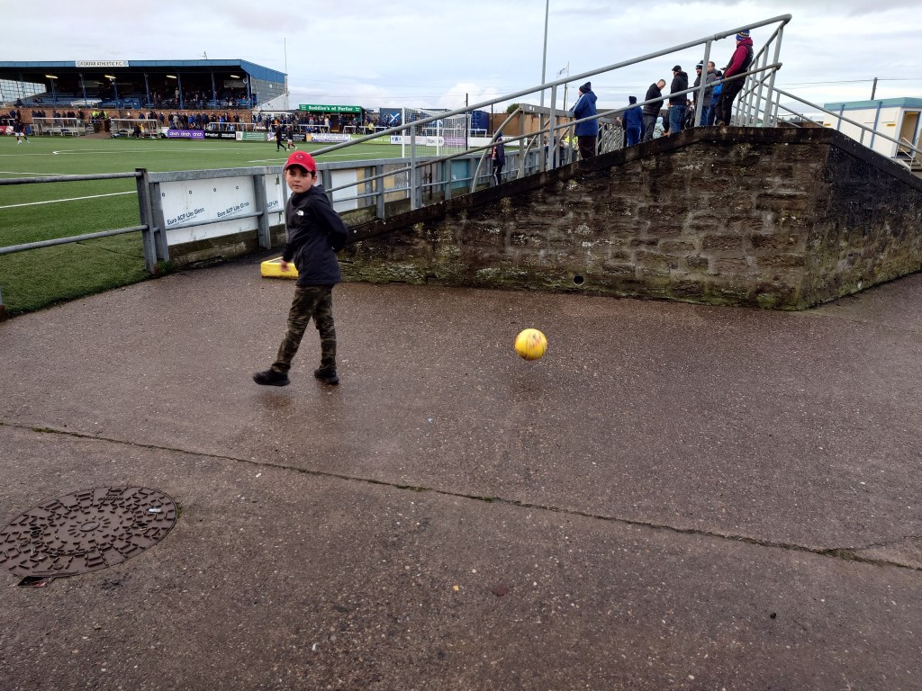 With the lack of kick about potential, half time was taken up by a game of something I have probably not played since I was Jakes age. Wally and it went on for the majority of the break before nipping into the club shop to get a badge for my brother. This leading to “can I get a scarf”. A can of worms has been opened with that. I think is has stemmed from our current Highland League book project which includes a scarf from all the grounds, now Wee Man just thinks its every random ground. I cant really complain as his interest in fitba is pretty much insatiable and if this adds to it it then hey ho. The teams were out as we exited the shop and it wasn’t long before we had another goal and it was for the Warriors. This after getting in behind and Aitken and O’Reilly doing the business between them with a one-two and my man of the match O’Reilly finishing off the move. Then as quick as it was two it was three when the Warriors were given a pen. Opposite end from us but I saw a handball so I am sure it was the correct call. Of course it was Aitken who stepped up to grab a brace versus his ex-employers. From here Forfar fell completely out of the match. The team seemed to lose all fight, every second ball was maroon, the heads were clearly down and this worked its way into the terraces and shouts for manager Ray McKinnon’s head were more than audible and plentiful. Up until the third goal Forfar were playing well but confidence is a brutal thing and if you have a lack of it and a lack of points on the board games like these will go against you. In amongst the shouts for the gaffers head, there was a more amusing shout. “we need three goals to win, fucking hell, going by the season so far, I just want three shots on target”. Also among the murmurings on the terraces there seemed to be a lot of bitching about lack of local boys playing. Maybe I am wrong but is Angus a hotbed of football talent. I wouldn’t have thought so and I would have expected more incomers than not on the Loons books. I’ll easily stand corrected and maybe I am wrong on that, but it just seemed a strange thing- to moan about. On personnel it was good to see Josh Skelly has stepped up a level. A goal machine we had seen previously play for Broughty Athletic not too long ago. I am a big fan of teams taking a chance on players like this. Back to the game and Stenhousemuir cruised to the win deservedly so and as the the darkness descended and Aitken was substituted to booos and a shout of “you are fucking scum” the final whistle went and I had a chuffed wee boy next to me. He loved the ground, he was interested in the game but he was clearly ecstatic with his afternoon. Brilliant to see. In the car on the way home, he asked if we could go to Stirling Albion next. Of course we can dude. Of course we can.