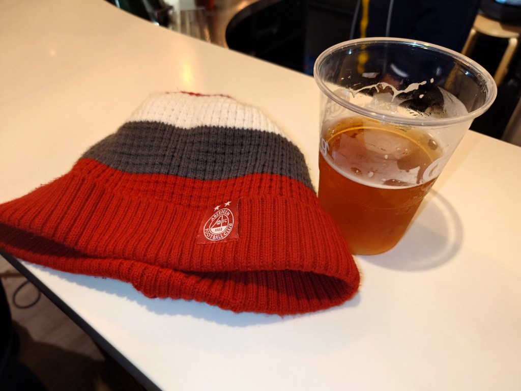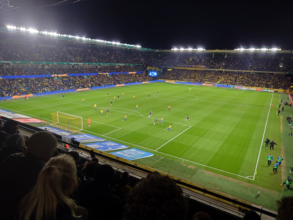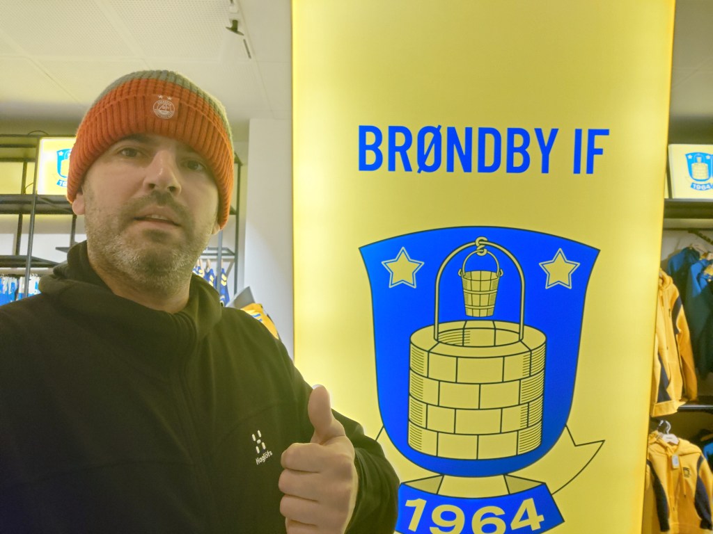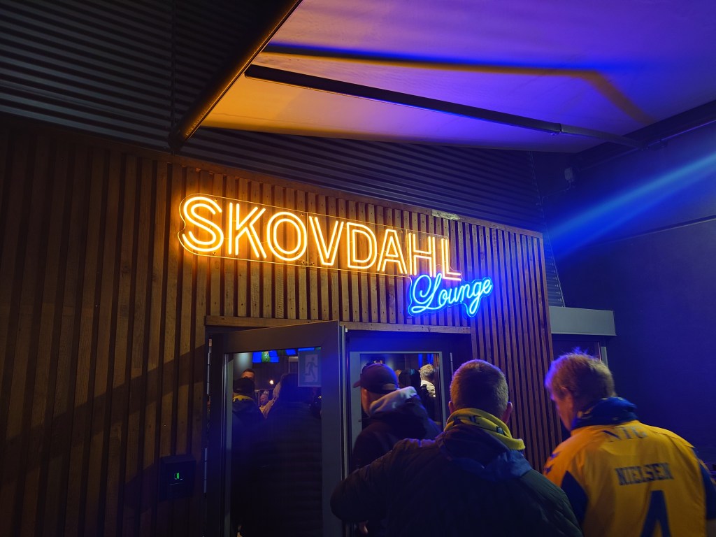 After getting off my flight to Esbjerg from Aberdeen, I quickly dumped my bag in the hotel before purchasing a bag of cans for the 3 hour train journey to Copenhagen. A journey on which I sat not having a clue how awesome my experience was away to be. On arrival in the capital I needed to work out how to get to Brøndby from the city centre. As I sat in the station I got my first Tuborg Julebrygge of the year as it is now out as the year is nosediving towards the festive period. I lovely drop. Despite sitting and scouring the best way to get across, I still managed to fuck it up. I jumped on a train to Brøndby Strand instead of Brøndbyoster which was the train on the opposite platform. A detail I had not realised until I had already left. Not a huge issue but the walk from where I was heading was significantly longer . To the extent I doubt I would have made it for a pint in the Ebbe Skovdahl lounge which was a must for the night. However as I got off the heavily graffitied train and through the utterly rank piss stinking train station I noticed a host of busses sitting outside marked up as “shuttle bus”. With the masses already on the busses being heavily clad in yellow I knew I was in luck. I would in fact get to toast the late Ebbe in his lounge afterall, this via obtaining the obligatory scarf in the club shop first. At this point I will mention the racket being created inside the ground, I heard it as I got off the bus a five minute walk away and this was around 50 minutes before kick off. I knew this club visit was to be special as soon as I heard the drums beating and the chants filling the Danish sky. To the lounge I headed noticing there was also a Michael Laudrup lounge as well as a decent sized fan zone with games, amphitheatre type bit, live music, loads of food and drink stalls and basically what looked like a place the club had put a lot into and have clearly thought about the fan experience of a matchday. But I could not partake due to time. Into the Skovdahl lounge I headed, where the walls covered in shirts from his era as manager, mentions of him painted on the wall and his honours list sitting with pride above the door it was a tidy place for a pre match pint and a friendly one at that. I got speaking to the barmaid who told me of the clubs love for Skovdahl and how highly the man is regarded. This was followed by a punter asking about my hat and putting two and two together. He told me of how ace supporting Brøndby under Ebbe was. I on the other hand explained how bad Aberdeen were but how much fun there was following Aberdeen in that strange period at Pittodrie. A couple of Tuborg Classics down the hatch and it was time for the game.