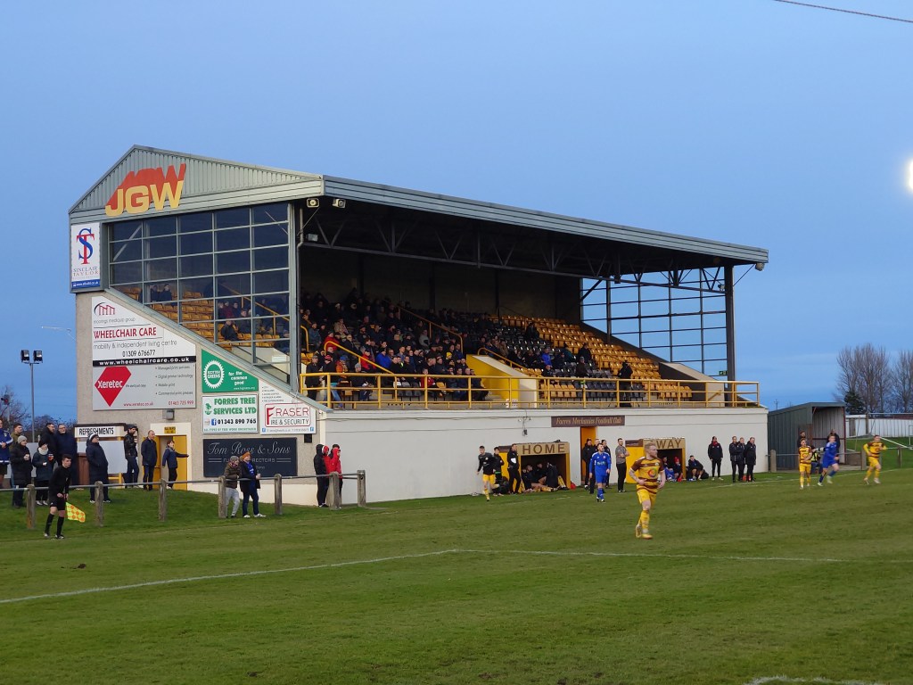 Random Fact – The current Mosset Park is not situated where Mosset Park originally stood. The whole ground was moved approximately five hundred meters in a south eastern direction to allow the re-routing of the adjacent A96 for the Fores bypass which was to sit between the ground and the railway line meaning it ran through the original park. The leading to a new grandstand being built on the new ground in 1987.
