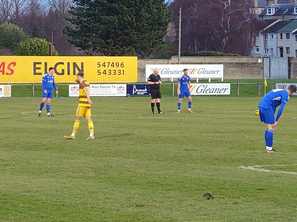 Wee Man has a habit of stopping everything to watch keepers in action. For the record Lossie’s keeper Cameron Farquhar was excellent throughout)