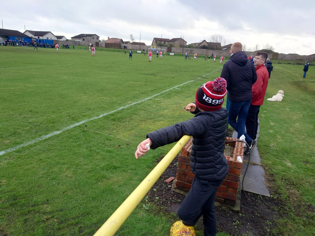 Plenty of grass to have a kick about at half time with the opposite side from the clubhouse being a decent expanse. Long range passing as my trainers and jeans got clarted was the story of the 15 before the teams emerged for the second half. A half that was to be much different from the first. By this I mean Broxburn were a different animal . More up for it from the get go. They had the ball in the net within three minutes of the restart when a corner found Douglas who made no mistake finding the net. From here there was only one team who were to win it. Bob Watt the Brox keeper was to be a spectator in goal and could only look on as his team mates pushed to kill the game. By this point the pitch had cut into ribbons and playing football couldn’t have been the easiest but Broxburn were good, they had swagger and just something about them. You could see why they were top of the table. A very decent side. They had to wait over twenty minutes to score again though and it was in controversial circumstances. They were awarded a penalty for what was never a spot kick for two reasons. One, it was outside the box and two it just wasn’t a foul. It was right in front of us and I cannot see what the infringement was, neither could the two punters to our left. Douglas stepped up and made it 3 v 1 and most likely game over. If it wasn’t over then it was two minutes later when Nimmo was provider again when he found Brass who tapped in Broxburn’s 4th of the day and killing any potential Primrose comeback. Despite a slow start the better team won on the day. A random choice of game which I would never have guessed would have been our destination on Friday night. But worth the travel for sure. On a personal note Crossgates Primrose are the 200th Scottish fitba club I have visited in my life. So although a totally random day out it will be in the history books as a somewhat special occasion.