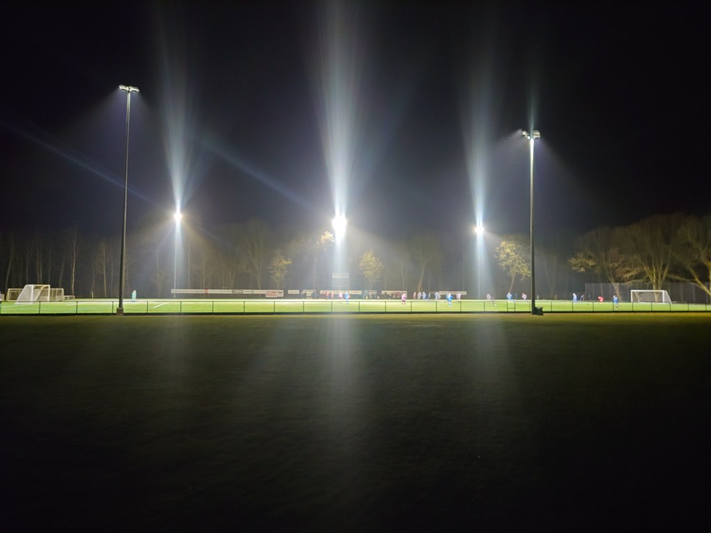 Changes were made and Kenni entered the match. Which funnily led to no more goals being conceded. Coincidence? I am sure he would agree. The half opened with a goal quick sharp when Michael Rødgaard took advantage of some poor defending. I could just make it out as I returned from a sneaky toilet break, (the cans and the cold was not a good mix). Again the (1)s were cursing the (2)s defence when they saw another effort cleared off the line. There was then another big chance to make it 4 v 4 when they were awarded their second pen. For what? I cannot say I am sure. I did not see ant infringement or claims. Just the ref pointing at the spot.Anders Ronne stepped up but put very little power into it, allowing an easy save for the keeper. However when the fourth came it was beautiful. 18 goals I have witnessed since I have been in Denmark this trip and this takes the biscuit. A cross into the box from the right found Rødgaard who two yards away from the keeper leapt and backheeled the ball goal ward and if that wasn’t impressive enough it nutmegged the keeper and into the net. A superb piece of skill and one of the best goals I have seen this season. The younger side looked a bit shell shocked under the pressure they were being subjected to and they found themselves losing for the first time in the match when Kenni dug out a sublime reverse chipped cross which found the head of Anders Rønne who sent the ball back across goal and in. A sixth came and Kenni is trying to claim an assist as he struck the initial effort but it took a massive deflection setting up Rødgaard to bag his hat trick and kill the game.( I think he was trying to mask his earlier sitter by claiming two assists) A game of two halves as they say. One each but the experienced heads shone through in the end. A much better way of spending the night than sitting stewing in the hotel in Billund. Where i headed immediately after the game where the journey was a nightmare as there were parts of wind turbines being transported adding a heap of time on to the journey. This was with a driver who was the doppelganger of the Beast from the Chase.
