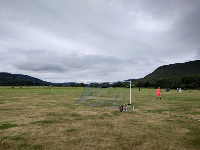 Let me assure you, there are plenty supplementary joys to the Welfare. In amongst it, you are given breath taking views of the Scottish countryside when travelling to these rural towns especially when on stunning Speyside or on either side of the Endrick Water. But many of these grounds are aesthetically wonderful too. Take Methlick for example, their King George V Park situated on the banks of the river Ythan complete with ruined kirk and hills with spectating cows adjacent. A cracking surface too I must add. Then you have Cromdale Park, home of the eponymous Cromdale FC looking out towards the Spey with striking views of Scottish wilderness with an uncountable number of green shades in the deep wilds as far as the eye can see. A splendid sight when the sky is bright blue, as the sun flares over Speyside like when we made the 120-mile round trip one Friday night. Canal Park, home of Macduff gives you views of the proximate hills with the Temple of Venus sitting atop staring back at you. You also have the North Sea crashing in a stone throw away with Macduff and its Parish Church minus a clock but complete with grizzly history in behind the waves. A view akin to Highland League Deveronvale’s Princess Royal Park for obvious reasons. Further down the country Kippen gives great woodland views from its almost secretive quaint spot in the south end of town. Then Fochabers throws up a scene furnished with a backdrop of the town and its centuries old structures with a saltire gently ruffling in the breeze overhead. But a certain place has blown us away visually more than anyplace. Ballater FC, where you sit in the site of the acclaimed old Highland Games at Monaltrie Park. The panorama on offer there is a spectacle to behold and just screams Scotland to me. The sharp surrounding green and purple clad hills which seem to envelop the place with the occasional seemingly grand sized buildings poking out of the dense forestry. It seriously gives one of the best environments I have watched football in over two hundred grounds in Scotland and it doesn’t end there. Coupled with the visual beauty you have the thrown in quirk that you are literally sitting where a glacier has made its mark and ploughed through the area leaving some clear evidence of a glacial trough as far as you can see. Glorious. Another class scenery and quirk combination ground found in the Welfare is located meters from the river Spey in Charlestown of Aberlour where you find Villa Park of Aberlour Villa. A glorious place dug down into woodland on the edge of town with the river and the Speyside Way at one wing. Then a distillery on the other wing, a side line which has a superb vantage point to watch proceedings unfold and a graveyard behind one of the goals. It is a truly astounding setting, and I would go as far as saying it is my favourite visited ground anywhere in our country. But its best feature is the battered looking clubhouse on the riverside wing. Old, tatty and most likely not fit purpose but delightful all the same. It should be put in the Hampden Museum when it is retired (hopefully never). Other ground related points of interest are you can watch games at ex-Junior grounds with the pre-mentioned Cuminestown, Cromdale and Macduff. Or you can watch in the shadow of current junior grounds at Longside Thistle (Longside JFC) and Glenugie United (Buchanhaven Hearts) with the former being around five yards from the brilliant Davidson Park pitch. and the latter also having the claim to fame of being the most easterly non pyramid ground in the country.(second overall in Scottish fitba behind neighbours Buchanhaven) But one of my admirable things we have come across is the amount of square post on the go. Brings out the inner fitba geek in me. Marvellous stuff.