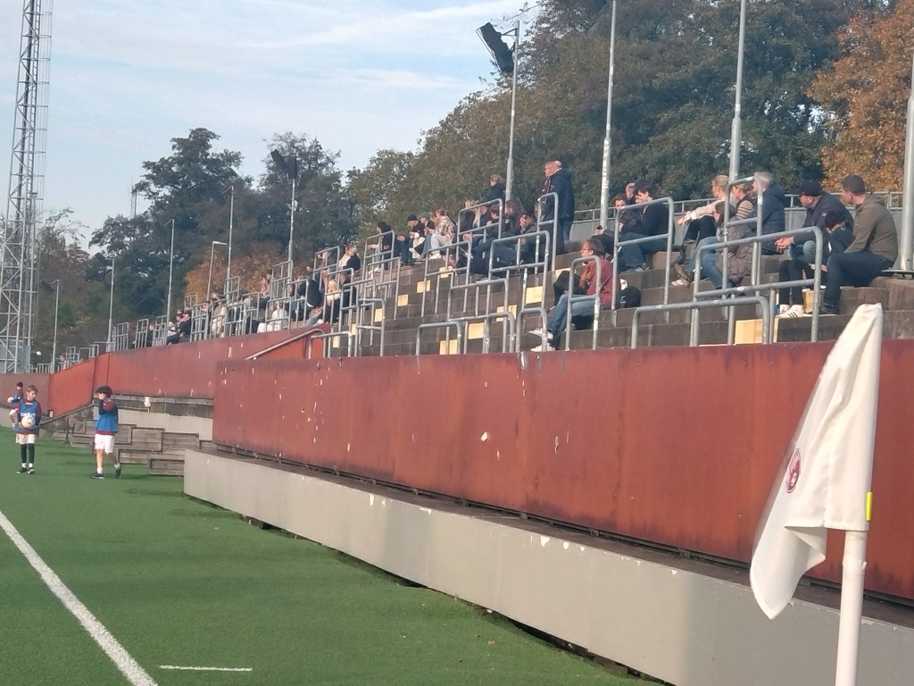 If I didn’t have a clue about the second tier of Swedish fitba last night, then the fourth tier was like a different world. But a fantastic one at that. First off, we have now been to the greatest named ground in all of our travels. It doesn’t come cooler than Valhalla. A name which again going back to my musical tastes is mentioned a lot. But to be honest it is a tidy wee set up to. A quality arched stand spanning the whole touchline on one wing and a terrace on the other which is also arched flanking the opposite by line. But what gives this place extra character is the sights you can see from it. Firstly the Ullevi (real not Gamlmla) to the north of the ground. The gradually raising wing stand is clear as i juts out in the distance. Then to the south there is the three connected high rise Gothia Towers and in behind sits the huge Lisberg amusement park sits where the screams from the rollercoasters are audible when watching a game at Valhalla this as the bonnie Valhallbron church spire looks over the ground. For so many reasons this place is ace but the first and foremost is the people and namely Jannick Winter who is just a genuinely fine bloke. After a chat via email before heading over in regard to a couple of club related details we met him before the game and he had a gift bag for Wee Ma. Including a shirt, scarf, stickers and pennant. An incredible gesture. One which is way above anything that is necessary but fantastic all the same. A chat with him and other committee members * on all things fitba and the love of the “lesser leagues” i couldn’t help but like the club and hope the freak results would come to fruition today. By that Qviding were siting 3rd in the league. 2 points behind Astrio (from Halmstad) with Husqvarna top and promoted automatically. Today was the last day of the season and second place would gain a playoff place, but Astrio were home to Hittarps who were well and truly rock bottom of the league, hence why i said “freak”. Another point of note that was to be liked about the club was the fact they had opened the doors for free to try and generate a big crowd for the final push.