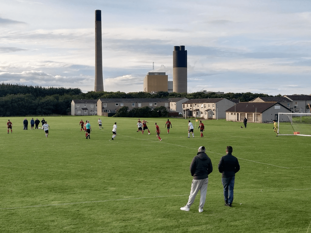 A new job came for me and a return to Angola was once again calling for me, this meaning a month break came from the NESFA but on the return the fixture gods threw us a bone and moved about games meaning the two outstanding clubs were now doable. I had envisaged one team would have to wait until 2025 but we were quids in. First up was a return to Peterhead to watch Peterhead United at Ugie Park somewhere that when you enter throws up great views. As the park is on the Ugie estuary you get views right up the coast where you can see Rattray Head Lighthouse and St Fergus Gas Terminal in the distance. This while the supply vessels sail past heading to the towns harbour. Arguably the best views in the whole North East Scotland FA league and another with the tang of seaweed flavouring the air. Visiting Cumminestown United put Peterhead to the sword with a convincing 5 v 2 victory, as they chased the second tier title. It was a night where an ex-team mate in Billy Daily was playing for Peterhead United leading to a bit of craic between us. 40 like me and still attempting to be a fitba player. To round off the conquest it was to see Peterhead United again, this time at near neighbours Boddam United. Another side with excellent views view but not for the scenic reasons of Ugie Park, more because towering over the park is Peterhead Power Station (somewhere in the past I almost came a cropper while carrying out a job there). But before we were to see the industrial views and the plumes we were to see the Boddam United badge in real life. This being the Buchan Ness Lighthouse and from here it was to get yet another NESFA chipper to take in proceedings. We had the chips but the common theme of Friday night bags of cans were the choice of others. A steak pie with a jumbo sausage chaser and a jumbo sausage for Wee Man were made quick work of before taking in this goal fest. One which including a 55 yarder from Peterhead fullback Ethan Stephen who let’s face it, overcooked a clearance. But it looked amazing none the less. Some of the finishing on show here was superb especially Boddam man Kieran Cameron as he lashed in a 25 yarder across the goal into the top corner early in the game. His team mate Alfie Mossop then out did him and cracked a thirty-five-yard effort past Leys in the Peterhead goal. The points went back to Ugie Park after a 5 v 3 win for the visitors and underneath the power station on what used to be RAF grounds we had done it. A superb place to finish off, rounding things off at such a photographical park seemed fitting. On the last day of the League 2 season of the 2024, Wee Man had his third league set up completed in its entirety. A league that 3 years prior we had never even thought about and one Junior never knew existed.
