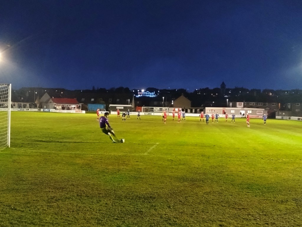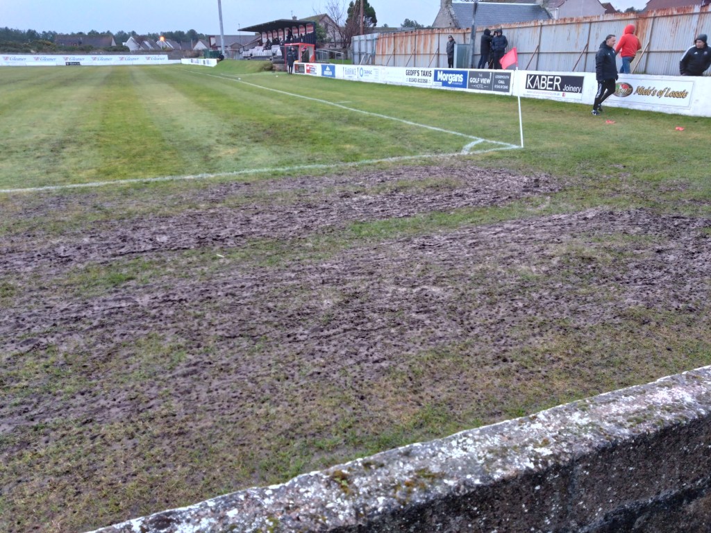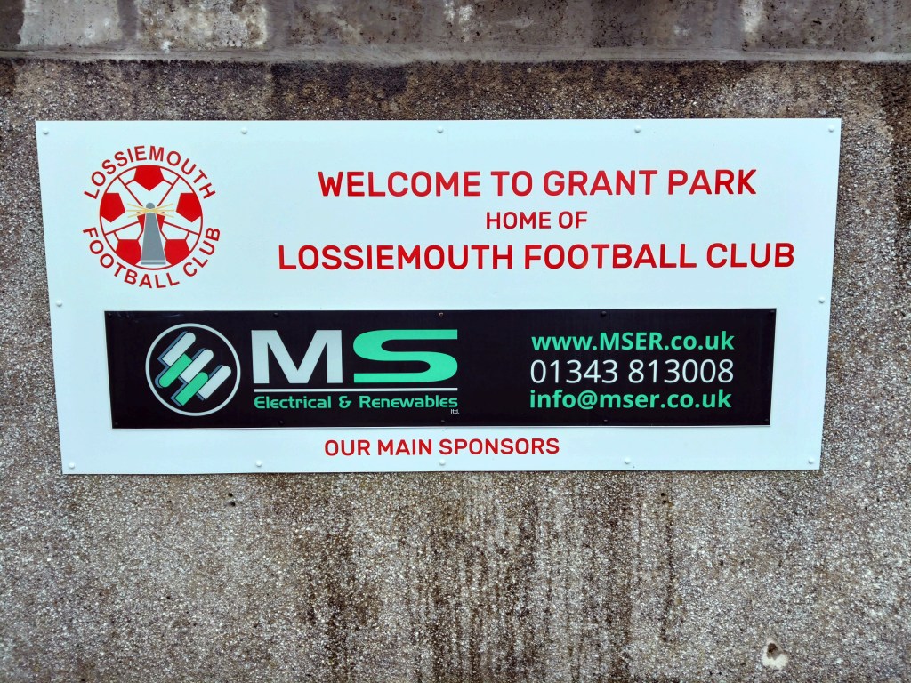 Some days just don’t go to plan. With an article to write on todays “whisky derby” in Keith complete with the fixture being played in December with a yellow wind warning across the country in play it was inevitable proceedings at Keith were going to fall foul. The morning was a fine one, warm, wind free and it got me wondering where these warnings were coming from. We headed to Keith and although a wee breeze, there was still nothing to worry about. A trip around all the distilleries for photographic/article purposes I was still not even thinking of the word postponement. A further stop at the Old Brig followed by a parting with a few quid in the superb Strathisla Bakery still never put the fear into me. After eating our bakery delights next to Simpson Park (home of Islavale FC who have the Old Brig on their badge, leading to Wee Man asking how far away from Kynoch Park it was, 30 seconds drive) we headed toward Kynoch Park where I could see the players warming up. As I tried to get a picture of the Sandy Stables Stand from the adjacent industrial units, I noticed the warm ups had halted , the cones were being picked up and Wee Man spied the corner flags being lifted too. 14.05 and the game was off. A second time within two seasons a game we were to attend here had been kyboshed within an hour until kick off . “Where can we go?” came the shout from the back of the car. Lossiemouth of Forres Mechanics were the options with the former being more appealing to the Wee Man. Back onto the A96 and off we flew to Lossie, this with a quick detour past the gate at Kynoch to ask why it was off. We were told the wind which seemed more than a bit strange as we stood in absolutely no wind at all. (We later found out it was pitch related). What was also strange was, as we passed the Fife Arms in Keith we saw the Turriff United (Lossies opponents) bus which then added a bit of fear that Lossie was off. Why would the Turra bus not be on the coast by this point? There was no mention online of it being off so we just held chapping.