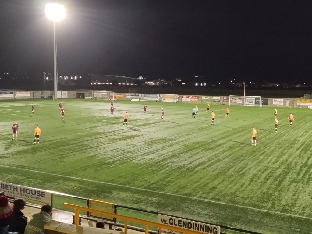 At a freezing cold New Bayview. Kelty were not cold and started the game getting at East Fife playing some fast intense passing football. This leading to a few decent opportunities which seemed to be half hit giving East Fife an easy ride at the back. But it seemed a goal was coming. Not taking advantage of the early pressure was to cost Kelty when the hosts took the lead. A long punt from keeper Johnston bounced in behind the Kelty defence, and with some hesitant goalkeeping, Blake nipped in to lob the stranded keeper from 25 yards. Deserved? No but the forward wasn’t to care. This saw East Fife waken up and come into the game but there were no goals before the almost hundred hardy punters nipped into the bar at the break for a well earned warmth.