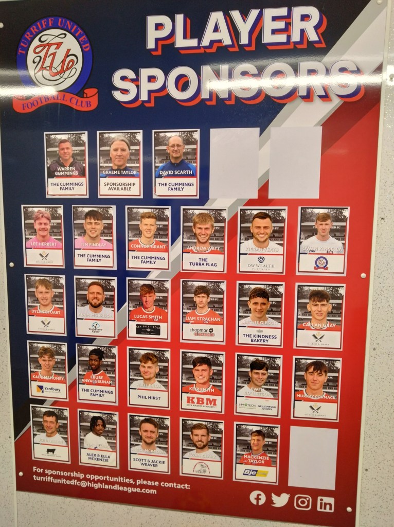 A customary early arrival to the Haughs in order to inject a few quid into the club via a can of Tennent’s in the fan bar, this followed by a delightful sausage roll. It is rare for me to venture away from a steak pie but if you have had a Turra sausage roll you would know why this is the case. But prior to the pastrified delicacy an interesting conversation took place in the bar. Wee Man from out of nowhere announced that “when we stop going to heaps of grounds we should always come to Turriff”. A bit taken a back I asked the reasons. There were a few and all valid. One “its close”. This is true as it is only 15 minutes drive from home. “There is a sweetie shop to get our fitba sweeties from before the game”. Also a fact. “The restaurant is ace and we can go for dinner there before the games”. He was bang on again (The Kastille for the record). “It’s a good ground”. He understated it as its ace in my eyes. Then finally “we both like Turriff”. I do have a lot of time for them that is true and we visit often and he always says he likes them too. He made some solid points to be fair to him. Watch this space as a Meldrum TUSC may appear soon.