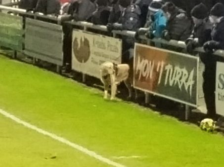 Half time gave me a good laugh as it saw the aforementioned big blonde dog tackle Wee Man and try to nick his yellow ball, making me think he really was up for taking to the pitch.Turriff gaffer Warren Cummings made big changes at half time with a quadruple substitution and to be fair it change the game completely(despite no canine introduction amongst the four). Turriff were far better for it and I am sure the argument is there to say they were the better team in the second half. As we stood in amongst the litter the Broch young team had disrespectfully left after their arse (I sound like an old man but there was a bloody bin literally five yards away), we could see this was a different Turra. They attacked and looked determined to make amends for their poor first half showing. A second came for them when they were awarded a free kick on the edge of the box. Previous goal scorer Yeats struck it into the wall but an immediate foul (which sent Broch manager Cowie apoplectic at his players) set up an identical free kick which this time Yeats sent past Barbour. Game on and it really was game on with the Broch goal under siege at times. Robertson missed a sitter from a handful of yards which he should have been scoring. Then the home side struck the post twice in quick succession and possibly once prior to that too, but hard to tell the latter from the other end where we were situated. In amongst this a few solid saves were needed from Barbour. The Broch were clearly toiling but they saw out proceedings and booked their place in the final. Proceedings which I have to say seemed to go on forever, it was almost 22.00 by the time the game finished. Where did the ref get that from.We didn’t get the cracker we imagined we would. However, it would have been interesting to see how it would panned out if Turra got at the Broch as they did in the second from earlier on in the match. We also didn’t get the big freeze during the game which was predicted by the Met Office, the cloud cover kept a bit of warmth on the go while simultaneously creating a sometimes spooky moon above us. Out of the sky and on the park, Fraserburgh had booked their path to the final against Formartine who scooshed the other semi 4 v 0