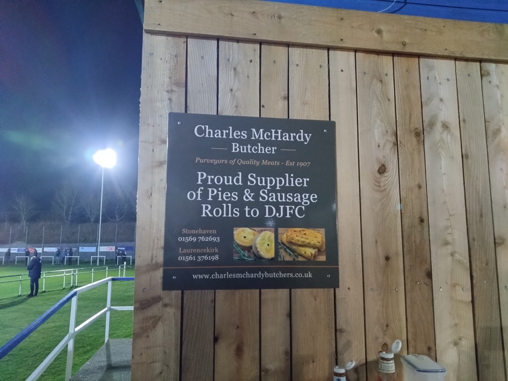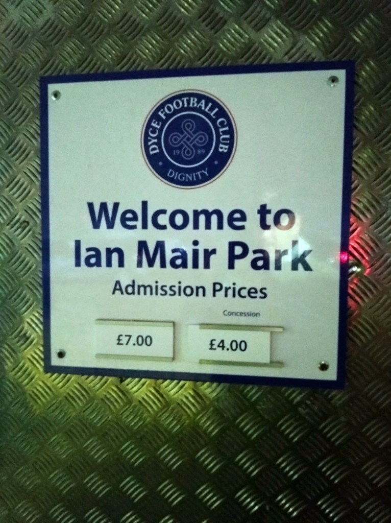 Part two of a Friday night lights double header, although the lights at Kingsford weren’t on long. After a brief stop at the glorious tribute to Denis Law at Great Northern Road/Printfield Walk, we were off to the edge of the city boundary to take in some Junior action while munching down on some of the best sausage rolls in the land. This after entering the darkest place in the city. The under pass of the A947, so dark in the middle it disorientates you. I am sure I have mentioned this before when at a night time game in Dyce. It truly is a weird feeling